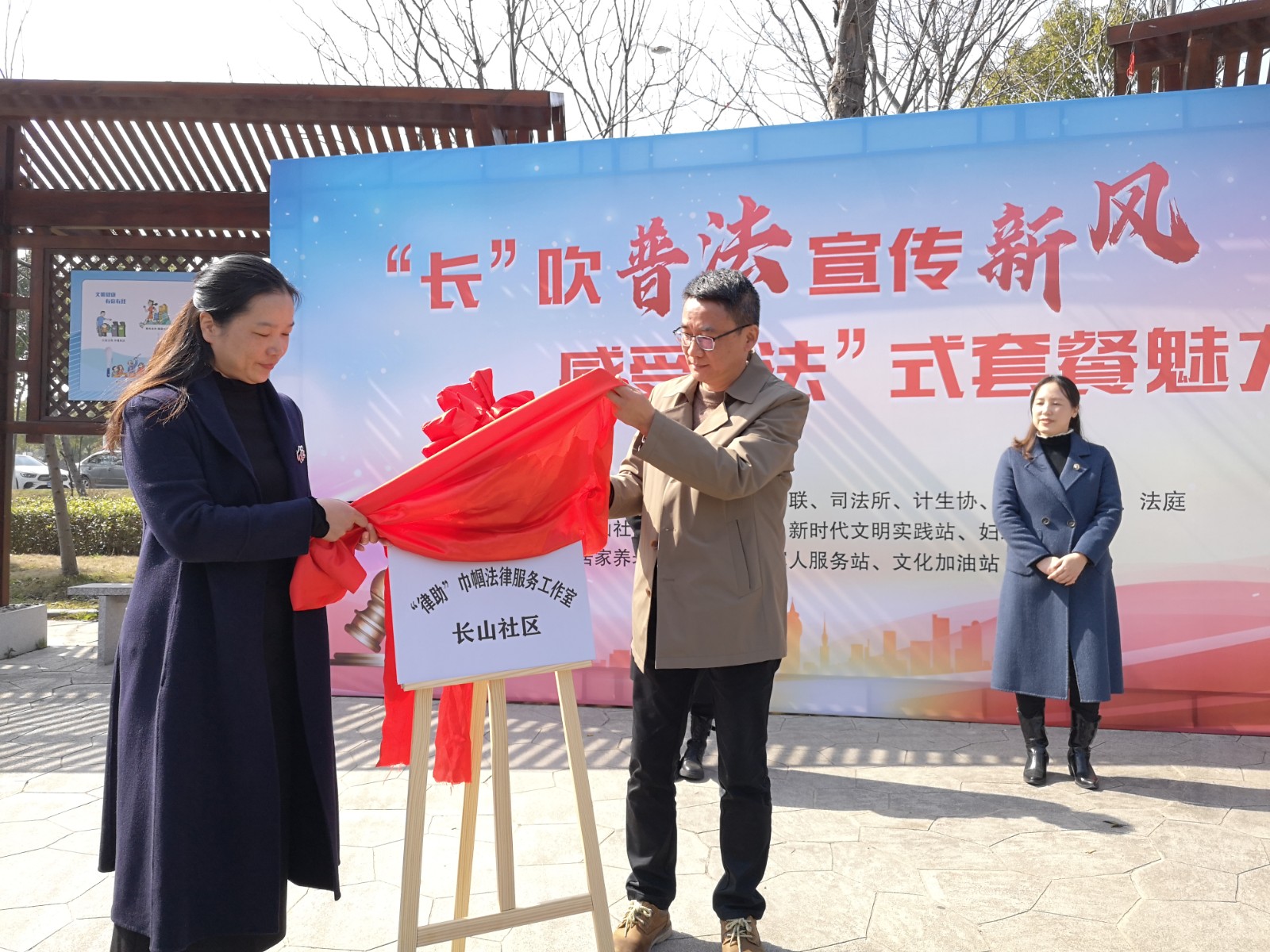 启动仪式上,长山社区成立了“律助”巾帼法律服务工作室,由小港街道司法所所长郑浩、妇联主席蒋丽萍揭牌成立。工作室引入“她”力量,运用巾帼的柔性调解与法的刚性审判有机结合,让宣传有力度,服务有温度。“老师,我可以咨询点法律问题不啦?我女儿家里……”闻讯而来的赵阿姨趁机进行了法律咨询,金牌调解员钱燕红现场进行讲解。