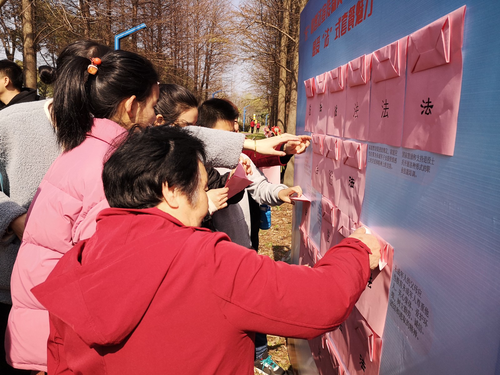 “一二三,开走!”在美丽的小浃江畔,大家健步前行,热情高涨,一边欣赏沿途江畔美景,一边感受浓浓的法治文化气息。“妇女权益保障法规定,哪种情况属于妇女在就业方面享有的权利?”游步道沿途设置有《妇女权益保障法》发展史及今年新修订版相关知识打卡点。“我们女同胞也要学法、懂法,用法律维护好自己的合法权益。”巾帼志愿者唐丽凤说道。