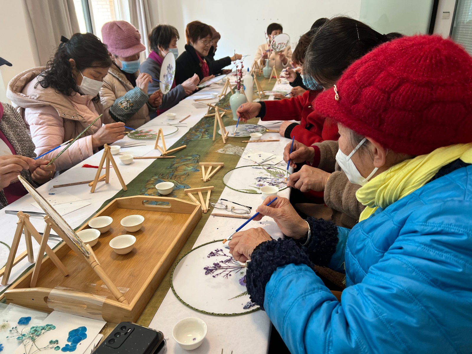 为了迎接“三八”妇女节的到来,3月6日上午9点,长兴社区在居家养老活动中心开展了一场迎“三八”压花制作活动。本次活动由社区组织各网格内阿姨们来参加,并邀请第三方机构优护万家来全程进行指导。在此次活动中,来参加的阿姨们兴致都很高涨,她们在老师的指导下把花瓣花枝黏在白色的圆形团扇上面,形成美丽的图案。她们做得非常认真仔细,不想有一点点的瑕疵,想给自己留下一副完美的作品。经过了1个多小时的劳作,阿姨们在轻松欢乐的氛围中完成了压花团扇的制作,并且拿着亲手制作的团扇拍了一张集体照。