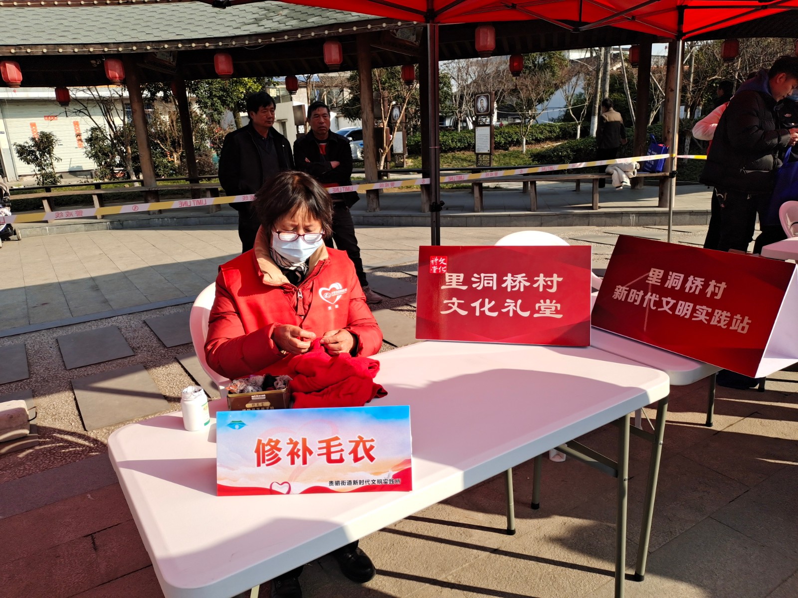 来自里洞桥村文化礼堂志愿者的翁阿姨一边补着村民拿来的毛衣一边笑着说:“补羊毛衫也是一门手艺,以前别人让我补,等我补完,别人都不知道原来破在哪里。