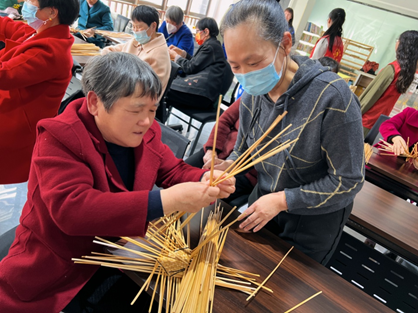 慈溪横河梅相社区老年大学开展"金丝草编 帽美如花"活动