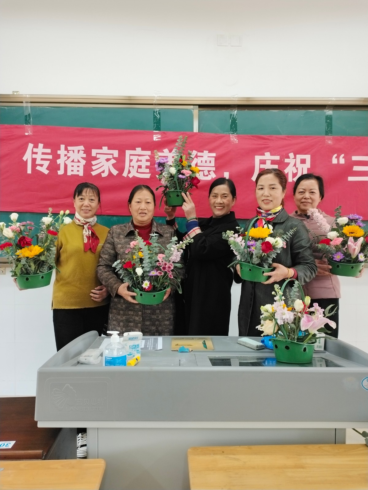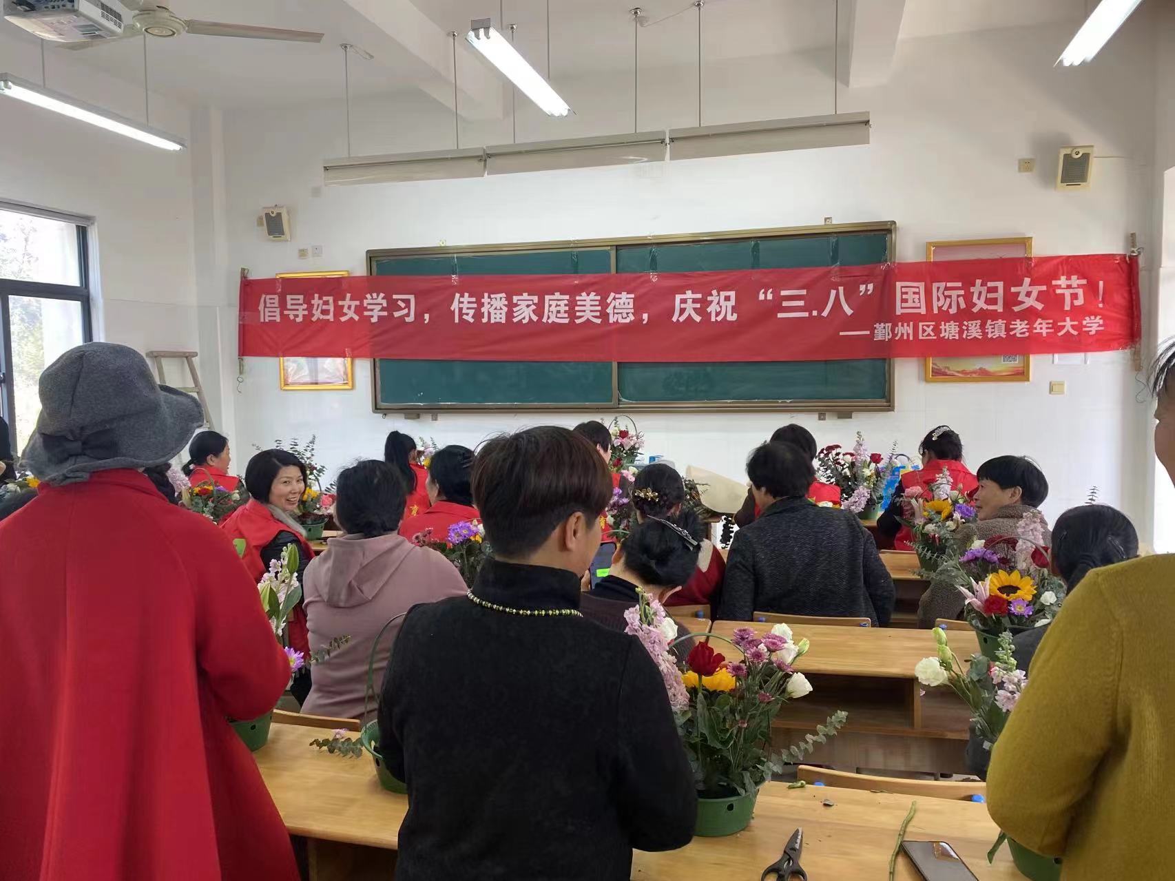 3月7日下午,塘溪镇老年大学的部分教师及学员在塘溪成校举行了庆祝 “三.八”节插花艺术活动。