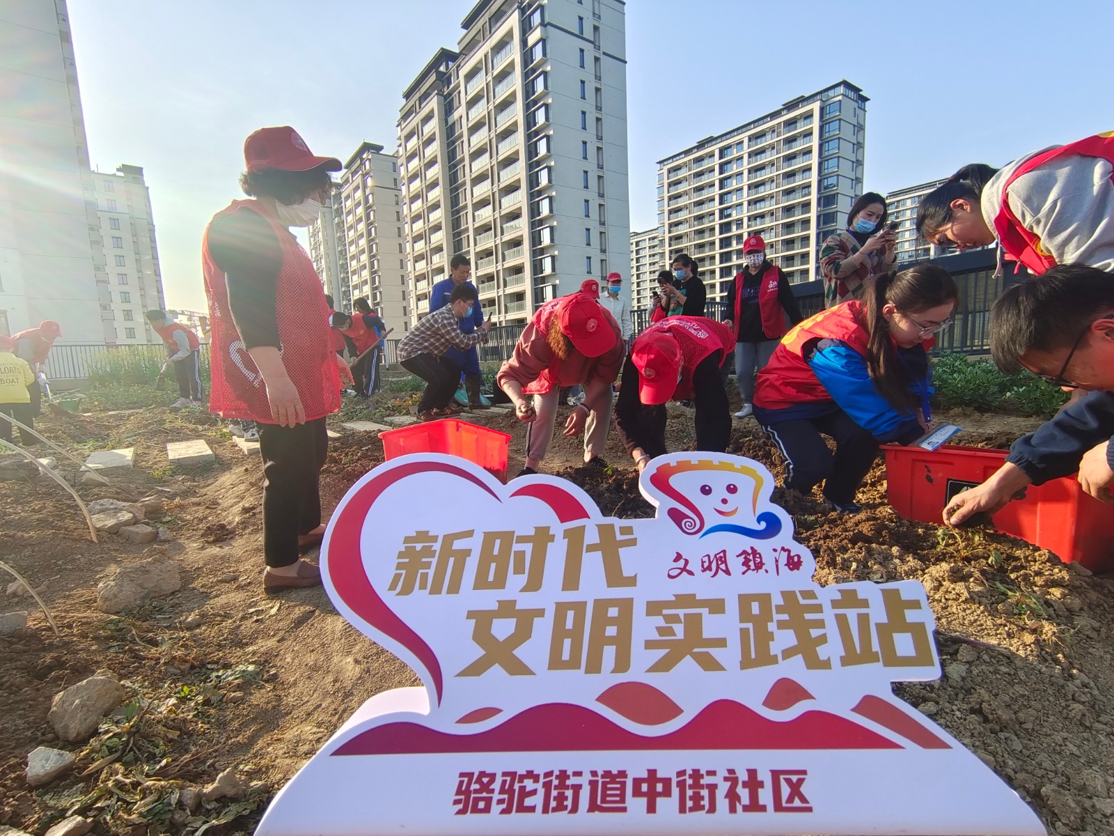 一年一度的植树节到来之际,为美化环境,增强社区居民兴绿、植绿、爱绿、护绿意识,美化社区环境,增强社区居民的志愿服务先锋意识。2023年3月12日,中街社区召集绿源花木社成员联合共建单位骆驼中学团委,大手拉小手共同开展了“拥抱春天,播种绿色”主题植树活动。由花木社成员们带领青年学生在骆驼中学种植实践基地进行花木、蔬果的种植和养护。首先由队长何福海为参与活动的志愿者们讲解花卉、蔬果的栽种和日常养护的方法技巧、注意事项,解答多位提出的在日常种花养花期间遇到的问题。随后大家按照分工,有的人刨坑,有的人运苗,还有的人填土浇水,有的人种苗。经过大家一下午的努力,土地上种满了各种植物,一片绿意盎然,在阳光的照耀下,小苗昂然挺立,为平台增添了蓬勃生机和活力。参加此次植树活动的志愿者表示:“这次植树活动非常有意义,我很愿意从自身做起,为建设美丽环境尽绵薄之力。”