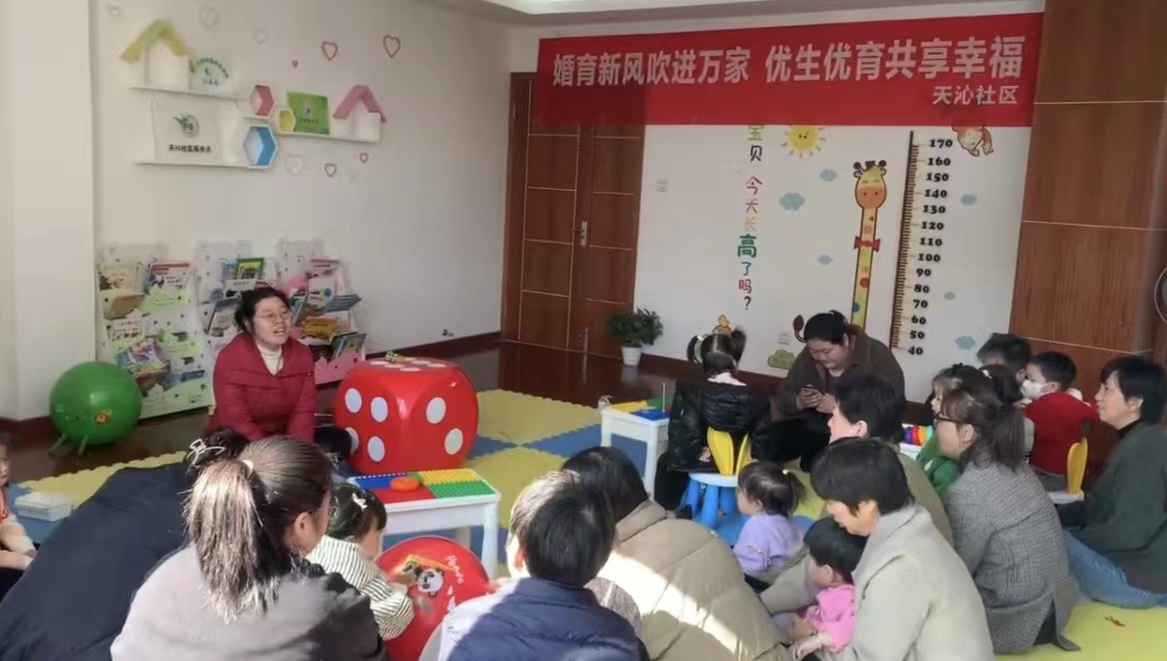 近日,天沁社区在社区二楼活动室开展了“优生优育”主题的亲子早教进社区活动。