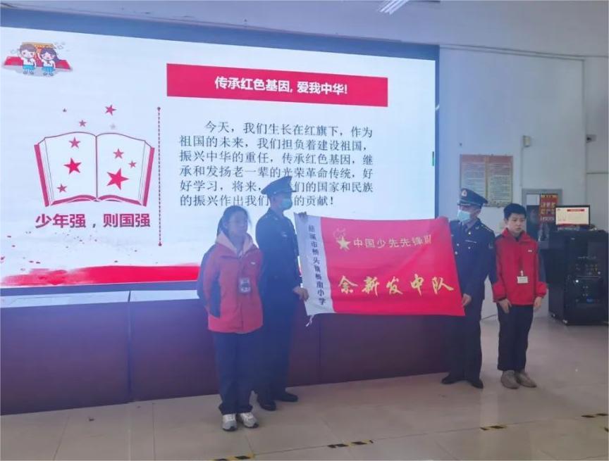 本次活动邀请了解放军71897部队一级英雄余新发寻根组成员、余新发的女儿余美珍女士、余新发战友后代和志愿军老战士后代代表,他们走进校园,与孩子们共同缅怀先辈。“余新发中队”还向寻根组敬赠了“余新发中队”队旗。