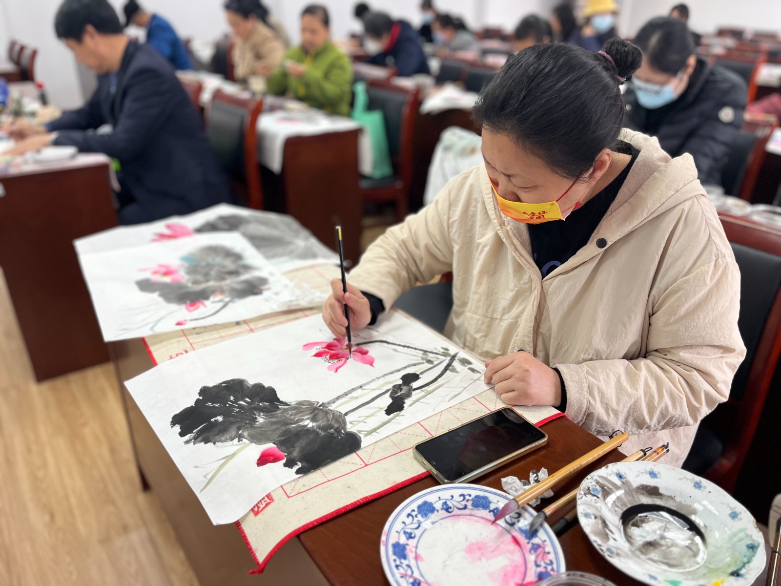 3月23日,镇海区蛟川街道石化三建社区新时代文明实践站开展“清风劲雨立春分 浓墨淡彩画青莲”活动。