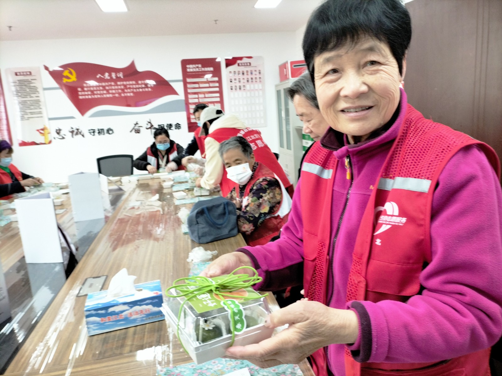 活动初始,网格长志愿者们介绍了清明节的各类民间习俗以及青团的制作方式。在认真学习青团的制作方法后,大家开始制作青团。揪下一小团掺了艾叶的面团揉捏搓团,不一会儿一颗颗绿油油的胖团子便成形了,再将胖团子压成一个个扁平的面皮摊在手心馅料有豆沙和咸蛋黄两种口味,志愿者们按照自己的喜好将馅料包入面团中搓圆。网格长拿出了精致可爱的巧克力小花朵装饰,为这一道春之味增添了一份新的色彩!最后也少不了满满的仪式感,志愿者为青团做好精美包装。