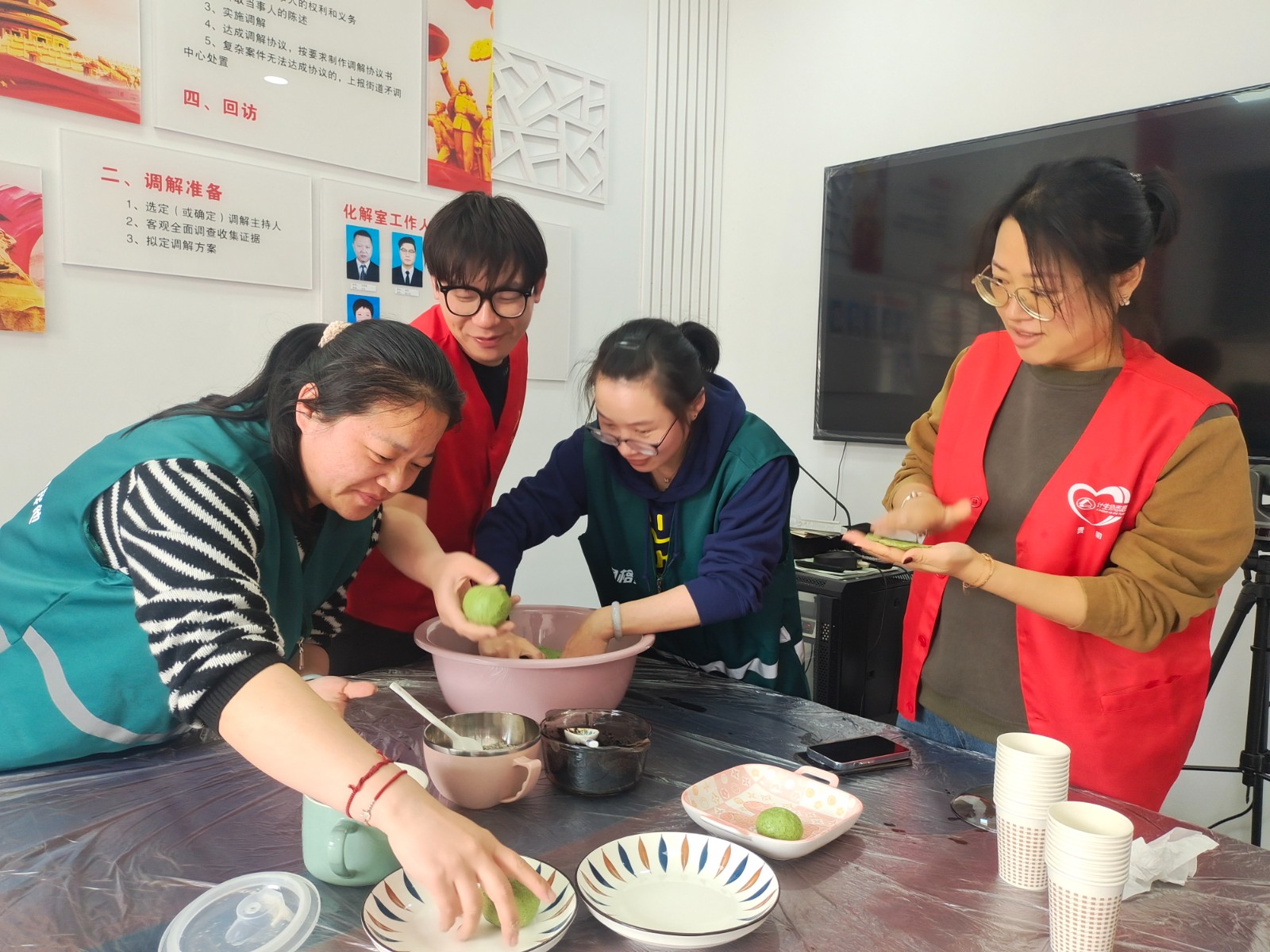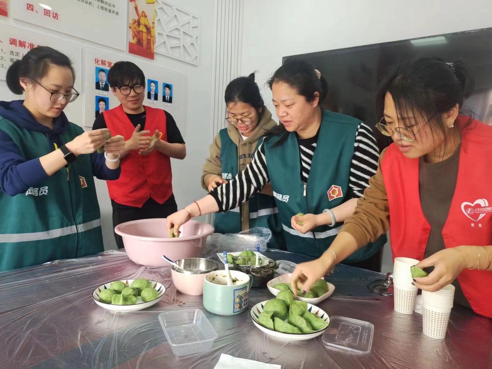 清明至,青团香,为弘扬传统美德,构建清廉村居,4月3日,镇海区贵驷街道里洞桥村文化礼堂、新时代文明实践站、村网格、妇联计生等联合开展“青团思清廉 邻里送清风”我们的节日-清明廉政文化主题活动。下午一点半,志愿者们早早来到会议开始忙活起来,我捻青、活粉,你揉粉、裹陷,等准备工作好了以后,开始动手做团子。大家一边做,一边互相交流着清明传统民俗,气氛和谐融洽,大家忙的不亦乐乎。不一会儿一个个模样俏丽的团子就成型了,随后将红豆味的团子、咸菜味的饺子一一摆入蒸笼。不久后,散发着淡淡糯香,碧绿碧绿的团子出炉了。大家分享着青团,网格长刘巧一边喜滋滋地品尝着自己制作的美味健康团子,一边津津乐道:“现在的清明节啊,青团子都外面买,好久没有尝到自己亲手做的了,这次终于又吃到熟悉的味道,真香!青青团子、青青团子,也寓意着要青青白白做人、干干净净做事。”