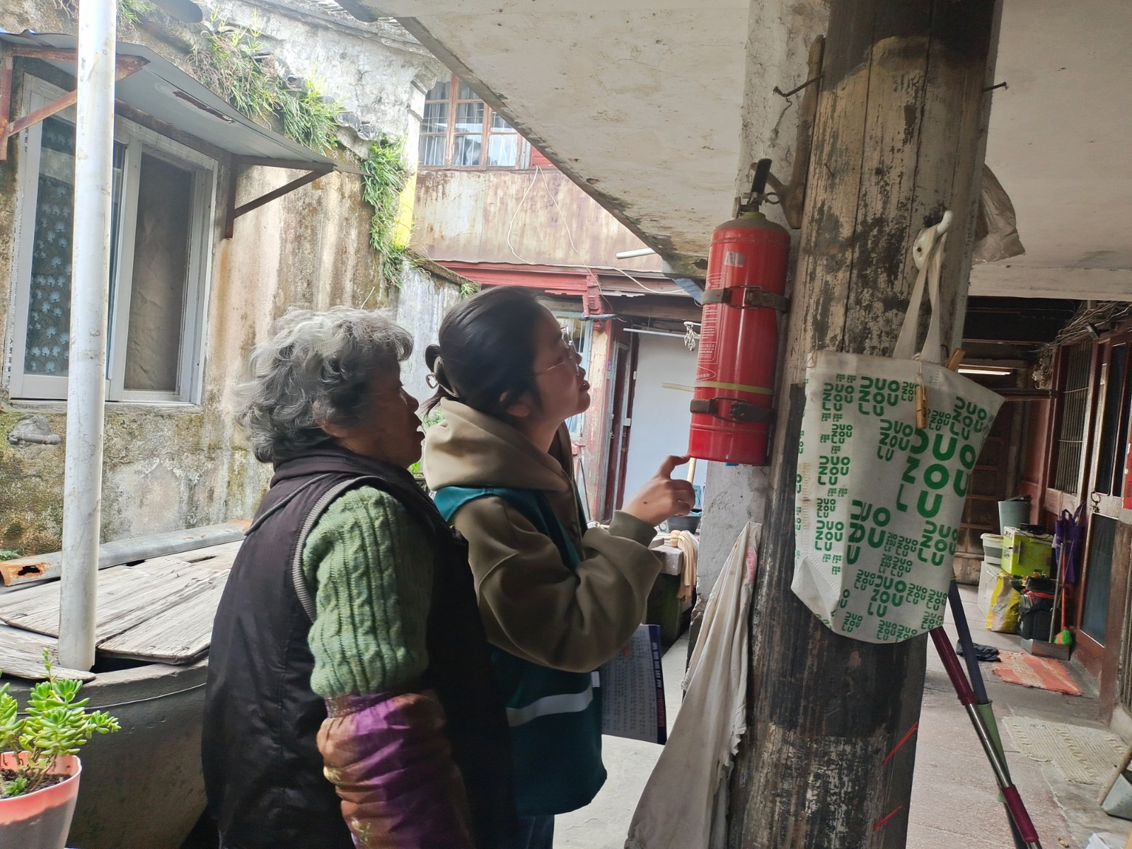 网格长钱丽萍来到村民家中为大家普及相关知识说道:“阿姨,清明扫墓要注意防火安全,我们家里也要注意用电安全。我来看下灭火器的年限吧。另外陌生电话和陌生人千万不要相信,不要被骗去呦。”