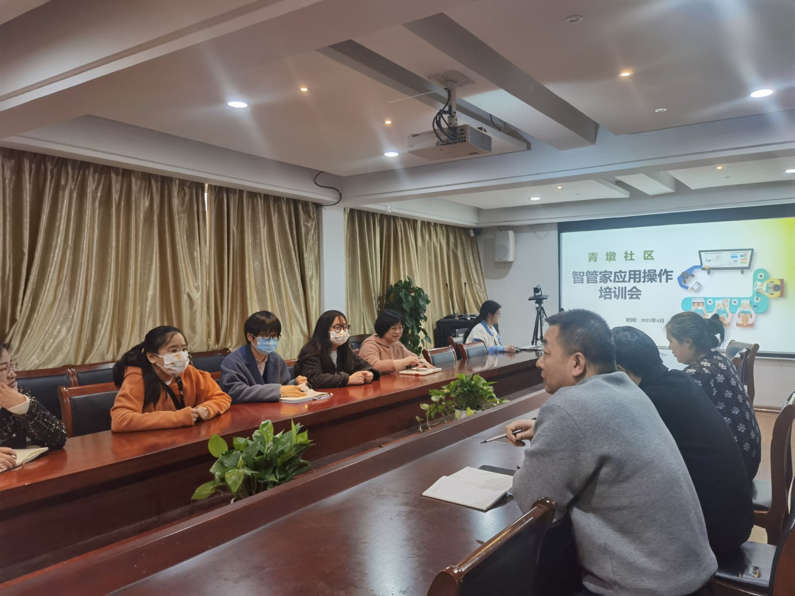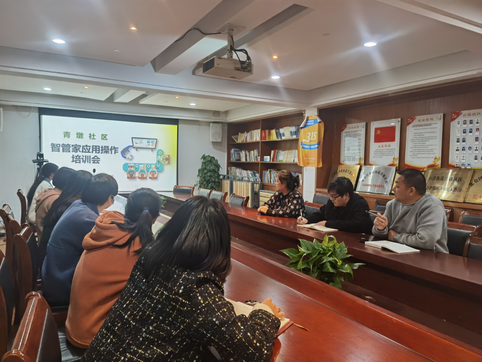 培训会上,王旭军主任采用PPT和现场问答方式,结合网格化工作对智管家应用如何操作进行了了详细的讲述,并根据操作中常遇到的问题做了详细分析及解答,让青墩社区全体社工、网格员更直观、系统地学习应用。