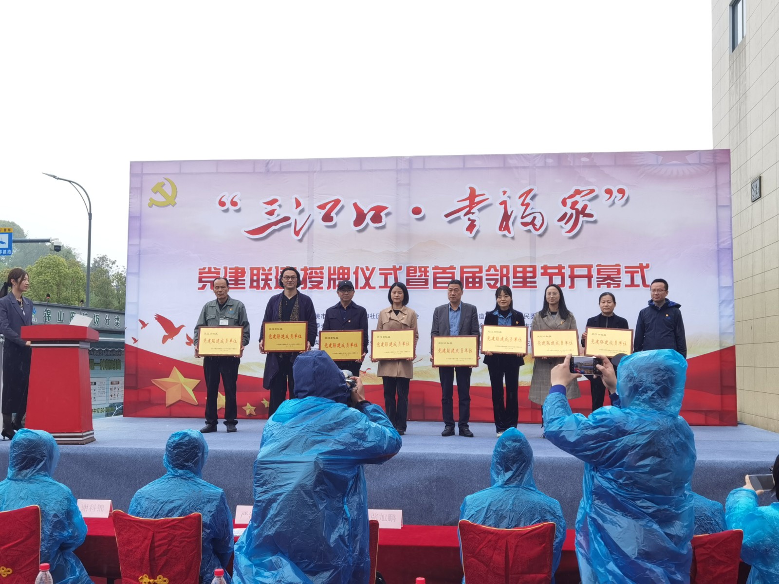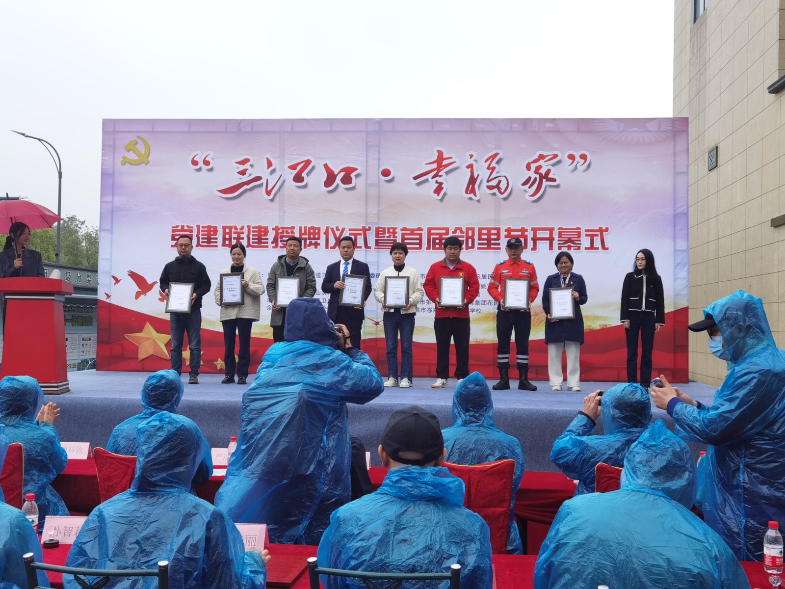 46日下午,春雨绵绵,梨洲街道三江口社区“三江口·幸福家”党建联建授牌仪式在雨中如期举行。学院党总支副书记、总支宣传委员、各支部书记及党员代表参加了授牌仪式,并签订校社党建联建合作协议。双方就此开启了“组织共建、活动共办、事务共商、资源共享”的党建发展新局面。