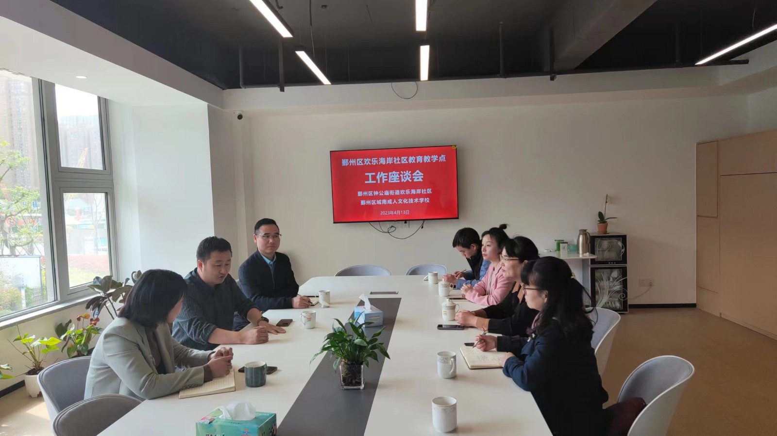 4月13日上午,城南成校在钟公庙欢乐海岸社区教学点举行了社区教育联系会议。本次座谈会主要讨论城南成校与欢乐海岸社区合作办学以来,在未来社区数字化管理与终身教育的共建方面有哪些可实施的项目,及如何落地执行的问题。