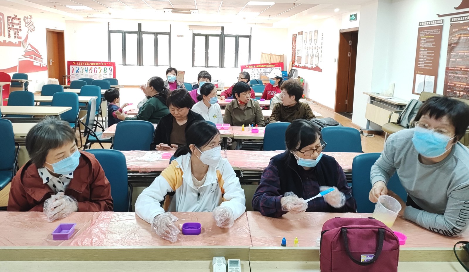 2023年4月12日下午,为了丰富社区居民日常生活,促进社区居民沟通交流,提高居民的动手能力,天合社区联合天合社区居家养老服务站开展“邻里巧手坊—手工香皂”活动,20名社区长者前来参加。
