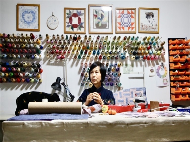 傅春叶既是柴桥成人学校“双证制”成人高中的优秀毕业生,也是是北仑当地小有名气的布艺手艺人,原本就会裁缝技艺的她凭借着一腔热爱,在业余时间自学布艺拼接,通过视频教学、自己研究、出国学习,掌握了先进技艺,积累了丰富经验。在2016年第二届中国拼布创意设计大赛上,傅春叶的作品获得了院校组金奖,随后有越来越多的作品在中国各类拼布创意设计大赛上获奖。去年,她的拼布作品还在“喜迎亚运共富生活”北仑区非遗工艺主题创作作品展中斩获奖项。