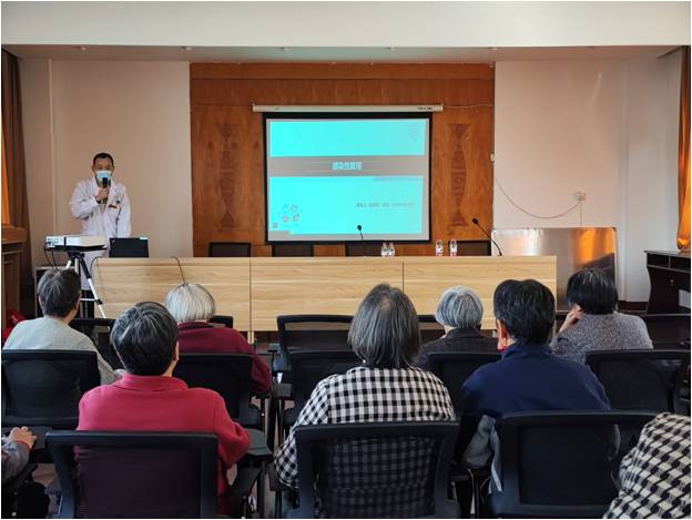 此次讲座主要围绕《感染性腹泻病》课题展开,医生从春季多发的传染性疾病入手,讲解感染性腹泻的临床症状、治疗原则及预防措施,并现场演示“七步洗手法”,同时也将冬春季高发的传染病防治方法都做出了详细的讲解,对部分指标异常的老人进行问诊。活动结束后,社区还邀请医生上门走访了部分独居、高龄老人,对老人存在的不适症状进行查看,并给予指导。