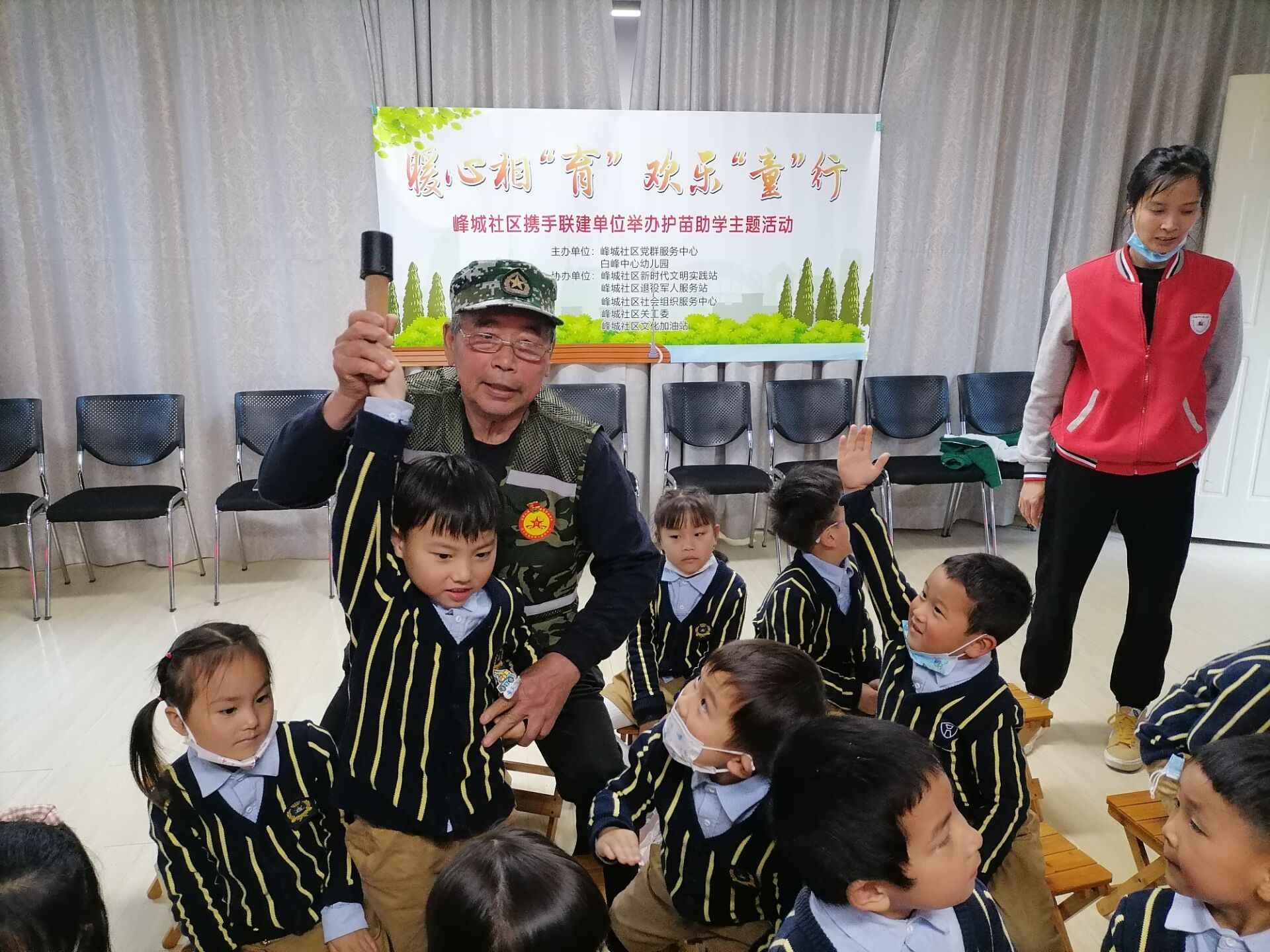 为扎实推进校地共育的工作安排,以“家庭教育、校园启智和社会聚力”三位一体的协作理念拓展幼儿的教学空间载体,峰城社区党群服务中心充分挖掘社区党建联建的能量,携手白峰幼儿园、社区退役军人服务站、社区关工委、社区厨娘分会、小蚂蚁俱乐部等单位,于4月17日上午举行“暖心相‘育’·欢乐‘童’行”为主题的护苗助学活动。