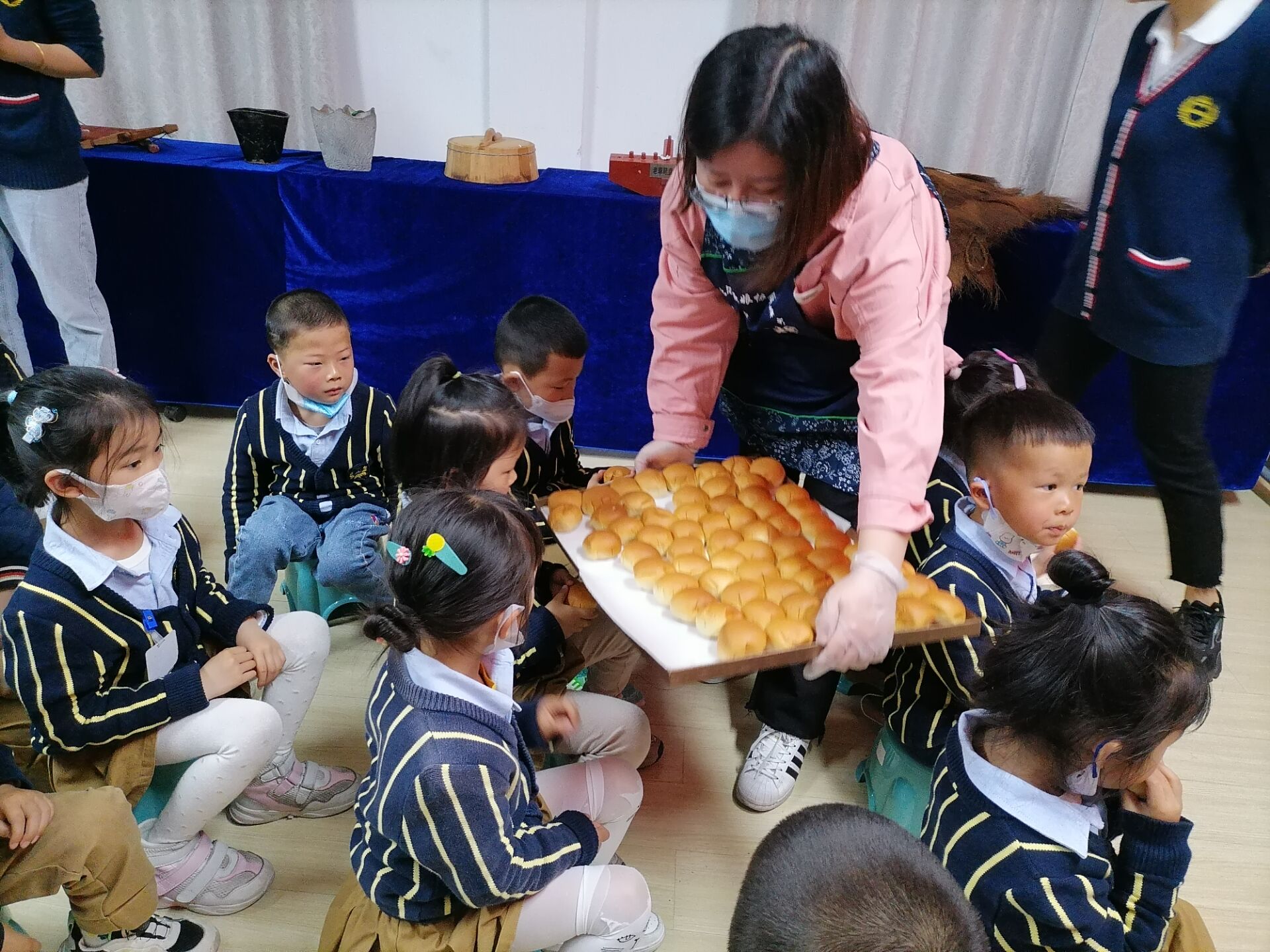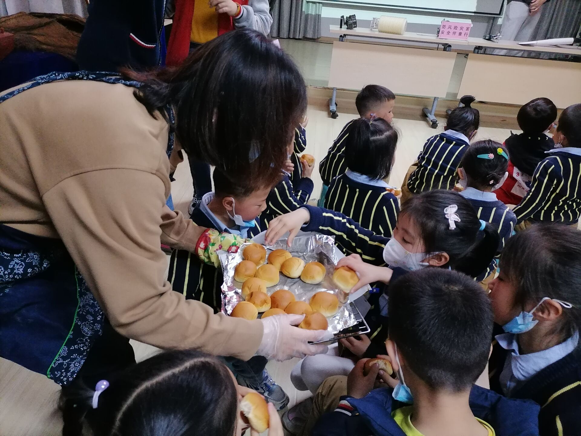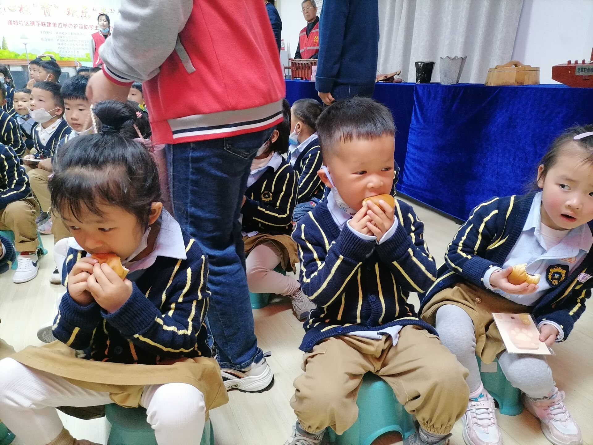 上述活动结束后,社区厨娘分会的阿姨们将现场烘焙的特色点心端上来,分发给在场的每位小朋友,让小朋友们坐在小板凳上一边品尝美食,一边听厨娘阿姨介绍穿山半岛米面食品的独特魅力,在小朋友热闹的掌声和叽叽喳喳的互问互答中,活动圆满结束。