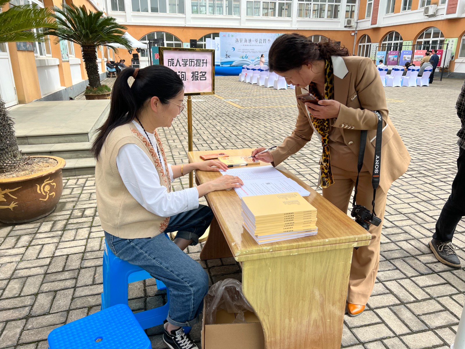 为切实做好2023年学历招生工作,让提升学历成为一种时尚,4月20日下午,新浦成校负责学历教育的老师在新浦镇全民读书月启动仪式现场专设“成人学历提升咨询、报名”摊位,为前来参加启动仪式的宾客提供咨询服务,借助人气,拓展招生宣传工作力度。