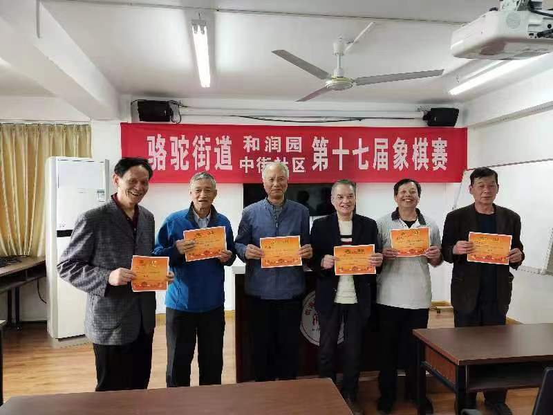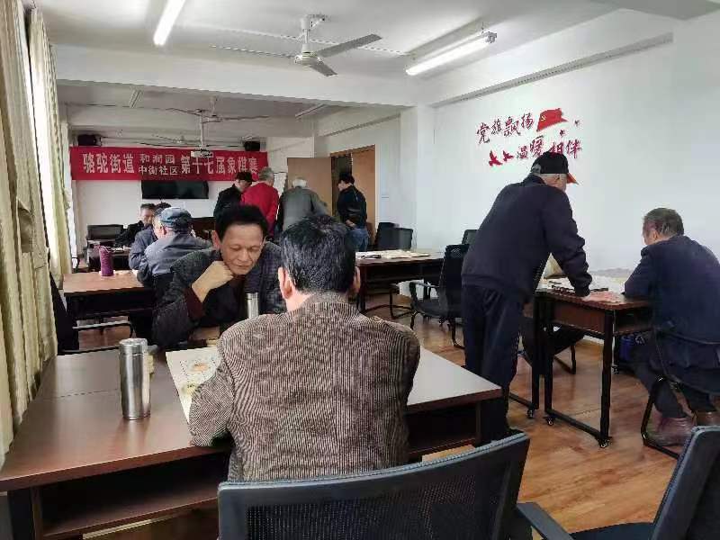 4月20日,和润园正培训室在举行中街社区第十七届象棋比赛。此次比赛共邀请到象棋队成员、社区象棋爱好者16名人员进行参赛。比赛前十分钟,由裁判刘有桢老师宣布比赛规则,参赛队员中很多已经多次参加社区的象棋比赛,非常熟悉比赛规则,纷纷摩拳擦掌,跃跃欲试。在一声开始中,象棋比赛拉开帷幕,八副棋盘同时开走,不一会儿就杀的热火朝天。很快,一些技术不佳参赛选手就败下阵来,紧接着开始第二轮循环赛。一整天下来总共杀了6轮,最后决出最终排名,前6名获得了金、银、铜等奖。中街社区象棋比赛,不但给棋友们交流经验提供了平台,更让老街坊邻居的感情有了增进。友谊第一,比赛第二!棋逢对手比拿了名次更开心。”