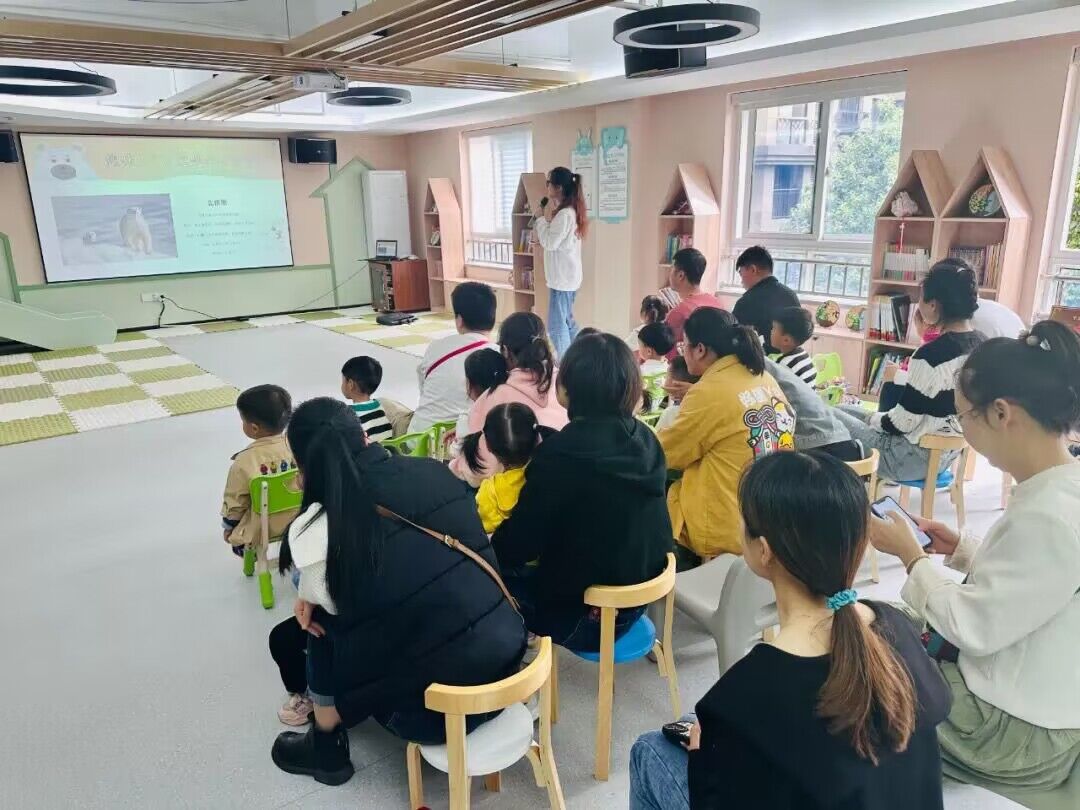 老师用生动的语言,形象的动作为孩子们讲述绘本《白熊的短裤》,激发孩子的阅读兴趣。营造浓厚读书氛围,同时增进亲子关系。