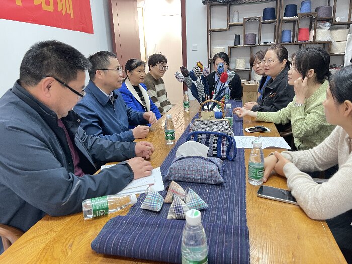 王国章老师高屋建瓴,就展馆布置、土布改良、土布作品创新、工作室发展、棉花实践基地建设五个方面做了悉心指导。