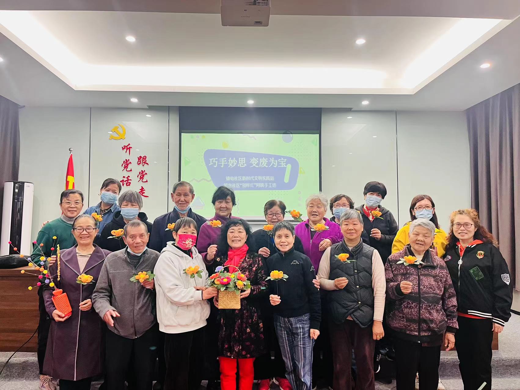 425日上午,镇海区蛟川街道新时代文明实践所联合镇海区蛟川街道镇电社区新时代文明实践站、“别样红”阿姨手工坊开展一堂“假花”手工制作活动。在镇电社区网格员许宏峰、“别样红”阿姨手工坊成员带领下,居民们将原本用于包装水果的泡沫网套变为一朵朵花朵,将这些“放错位置的资源”开发出全新用途,既环保节能,又扮靓环境。