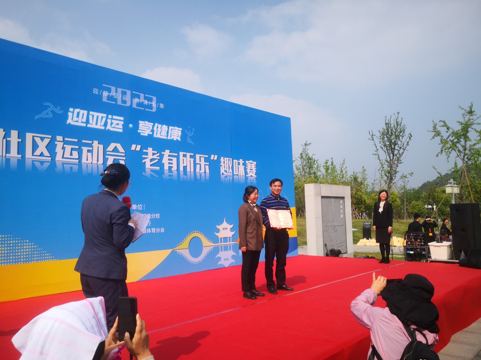 26日气温回升,午后的阳光也较强,但参赛的老年学员兴趣盎然,每个项目处叫好声、助威声不断,经过一个小时的欢乐较量,最后慈城镇分校夕阳梦之队获得一等奖,浮碧学堂春田花花队、宝峰学堂清风队获得二等奖,维拉小镇学堂春韵队、枫湾学堂欢乐枫队、慈湖人家学堂开心队获得三等奖。慈城镇人民政府万媛媛副镇长、江北区老年大学冯叶飞校长、宁波银行江北支行郑琴副行长分别为一、二、三等奖获得者颁奖。