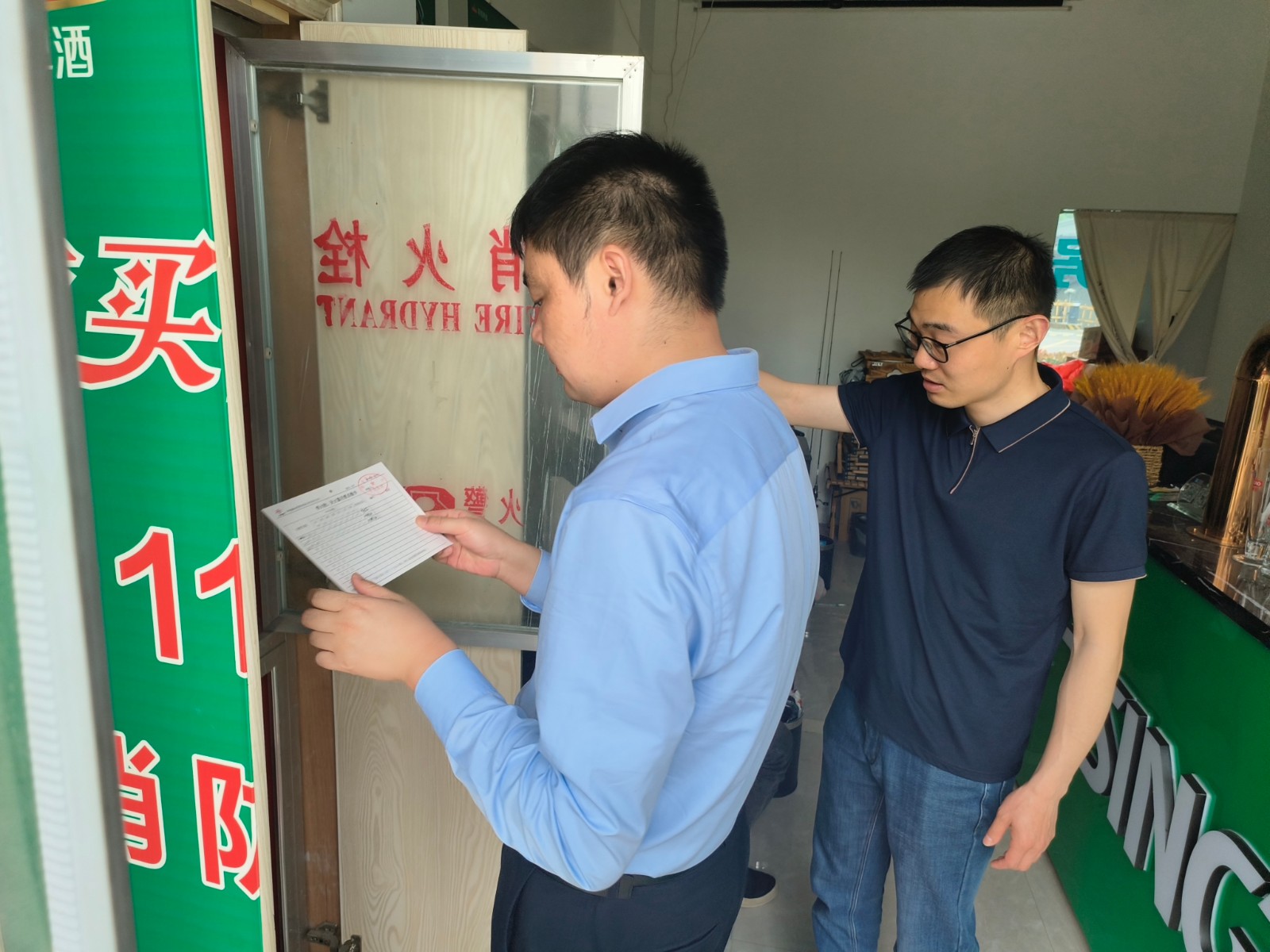 此次重点检查了早餐店、餐饮店、菜鸟驿站、托育园等商铺。主要查看了各商铺内是否存在电器线路混乱,是否配备灭火器材,是否违章使用明火,安全出口和疏散通道是否通畅,是否存在店铺、仓库、住宿为一体的“三合一”现象等。同时向商铺普及消防安全知识并发放消防常识手册,并向他们讲解如何正确使用灭火器和消火栓。现场发现隐患的能当场整改的,立即整改到位。不能整改的,当场下达整改通知单,要求其限期整改,并督促整改到位。