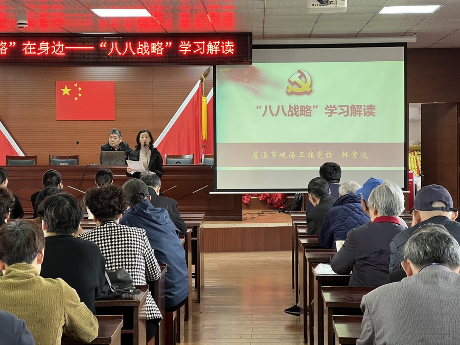 今年是“八八战略”实施20周年,为深入贯彻学习“八八战略”精神,深刻把握“八八战略”的内涵,近日,观海卫卫东村文化礼堂举行“八八战略”在身边——“八八战略”学习解读。此次讲座邀请观海卫镇党校副校长、成校校长韩震达为本村党员授课。