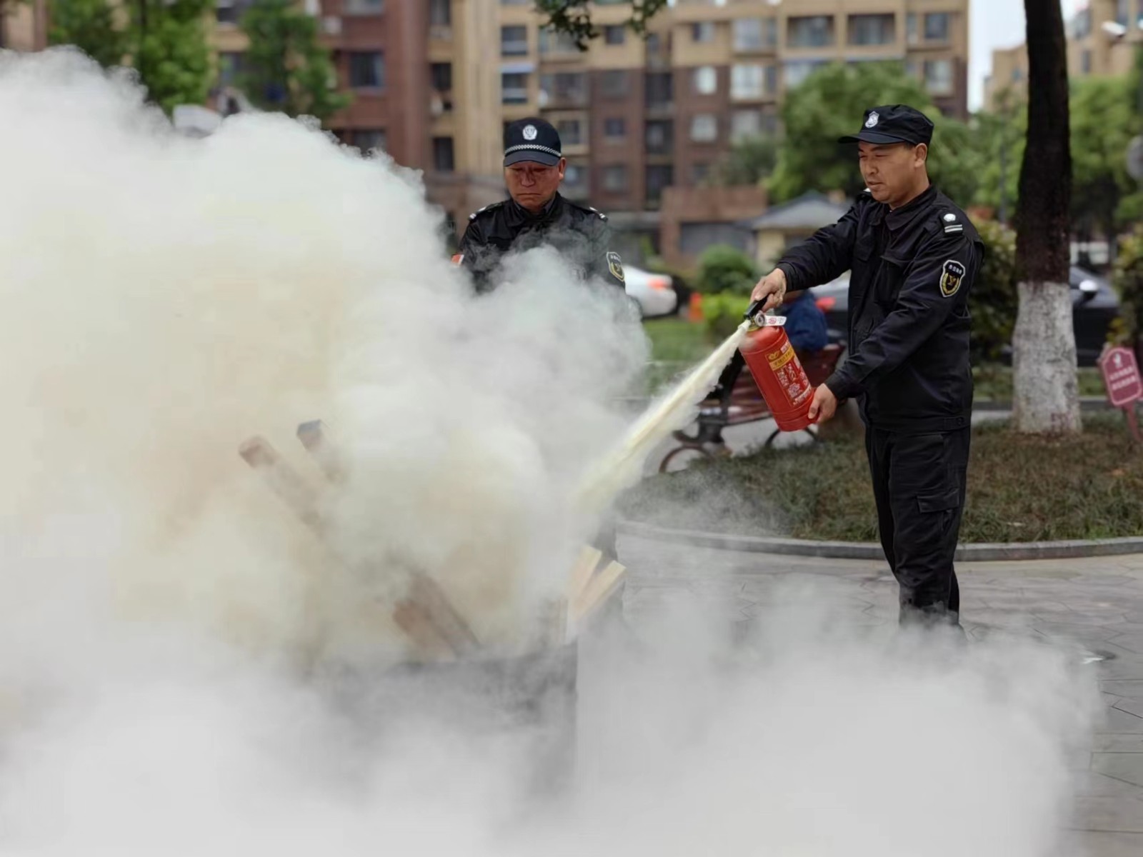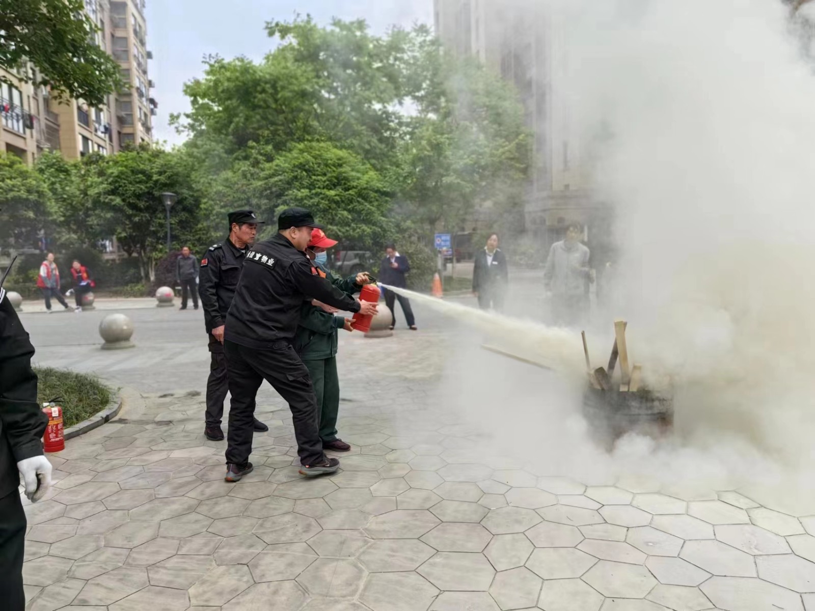 活动现场消防专业人员对物业相关人员进行了安全知识培训,详细讲解火灾防范要点、灭火器的使用方法及如何进行火灾逃生等知识,并现场指导物业管理人员安全使用灭火器,部分工作人员在指导下进行了灭火器现场操作练习。
