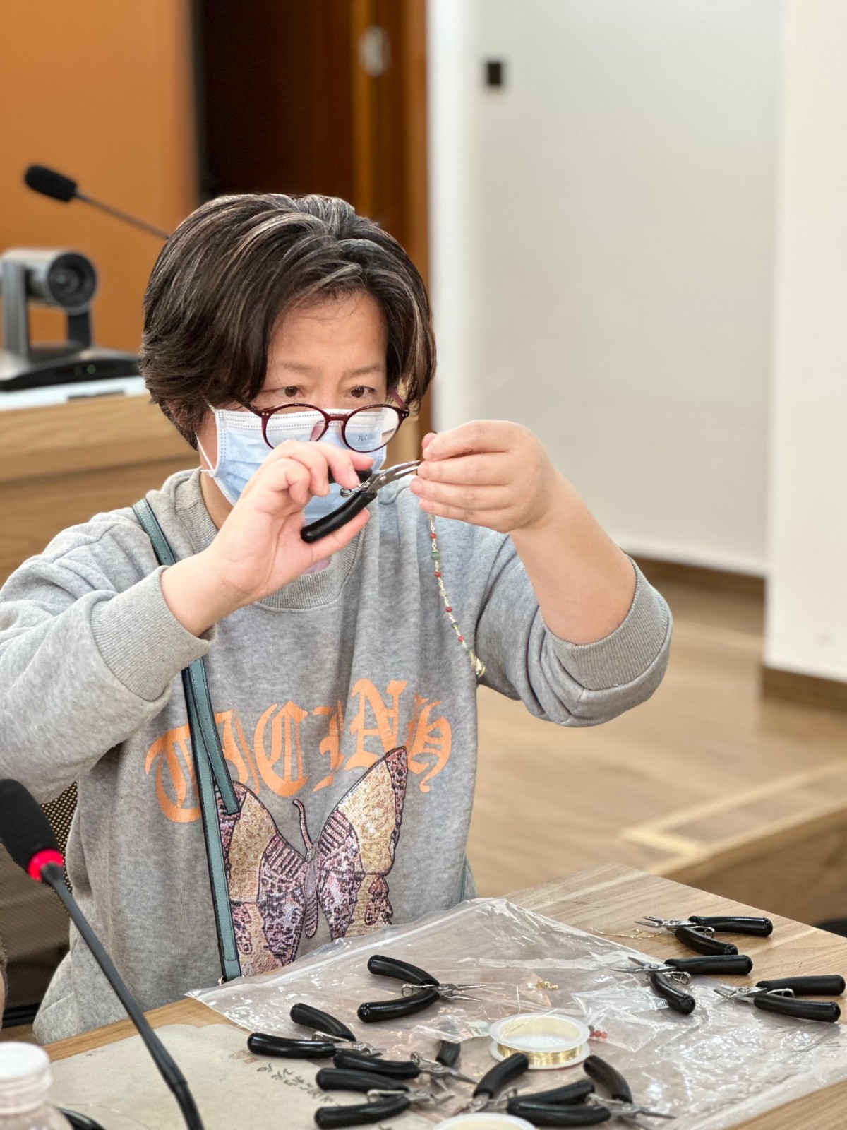 随着“国风”的兴起,中国传统文化被赋予了全新的定义,在“国风”催生下出现了很多新认知、新生代、新潮流、新品牌、新产业等。2023年4月11日上午,汉郡社区邀请社区内手工艺品达人蒲涛老师开展东方美学、传统文化,国风手工饰品精品课程。