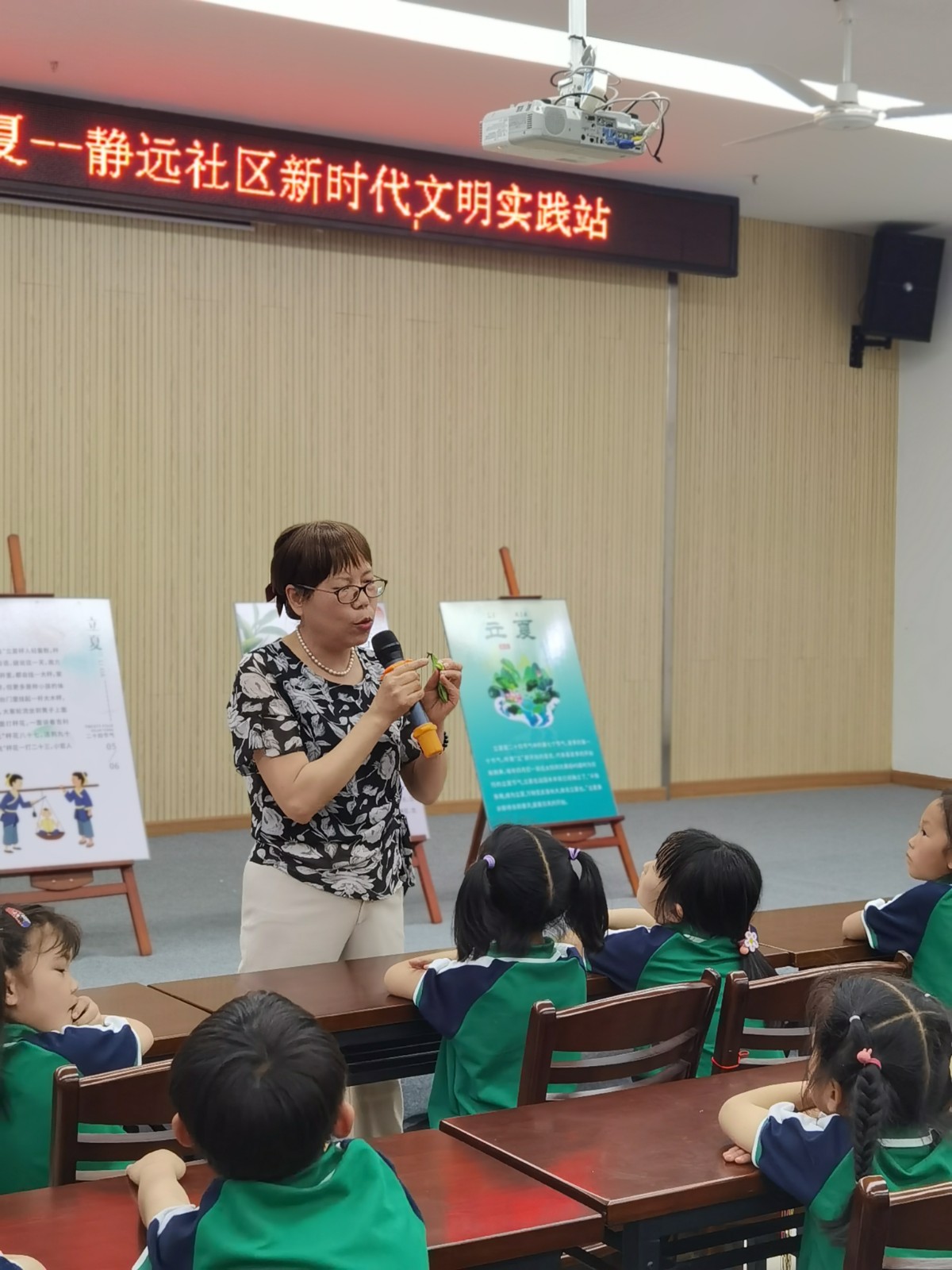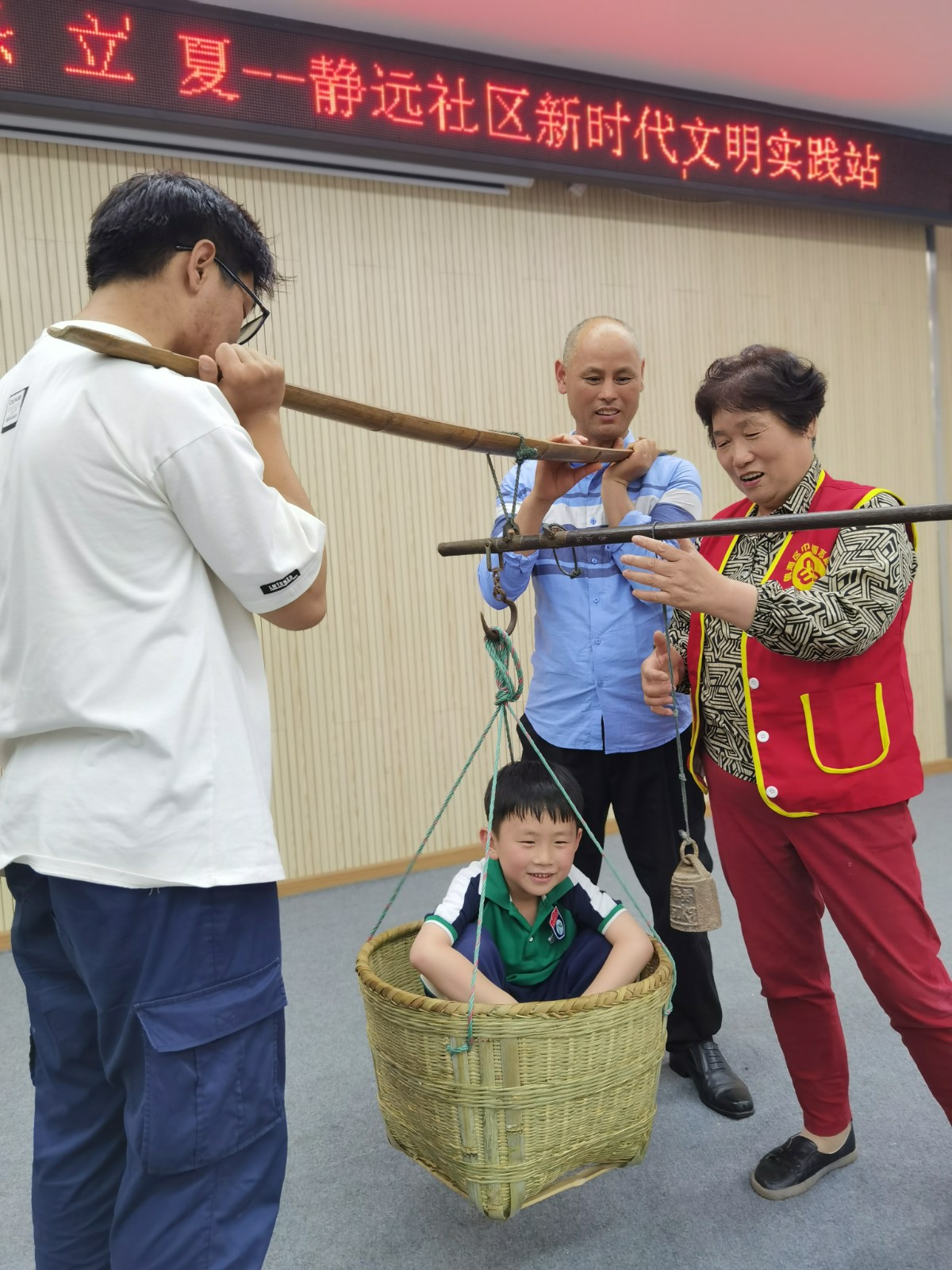 55日,静远社区开展了“浸润传统 快乐立夏”的系列活动,首先,“五老”成员李明娟老师用生动的语言为到场的孩子讲述立夏的起源和传统习俗,让中国的传统文化在孩子们幼小的心灵中生根发芽。接着,孩子们分组比赛剥蚕豆、编蛋套,在手工劳动中体会到节日的氛围。最后,孩子们跳入筐中称了体重,希望在夏天里茁壮成长。