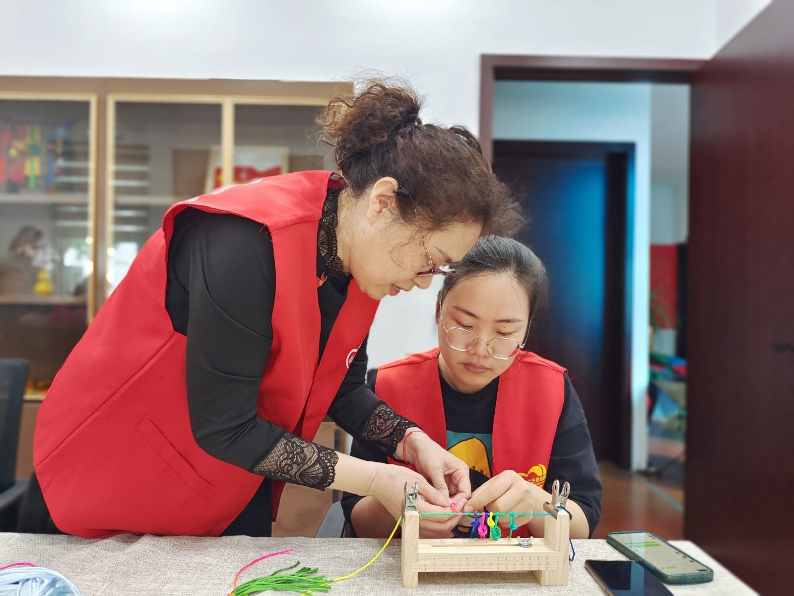 五颜六色的彩绳、固定器、钩针......一桌编蛋套必备的材料。镇电社区“别样红”阿姨手工坊的成员们围坐在一起,一边话家常一边编蛋套。在巧手阿姨们的指引下,网格员们的手灵活地穿插在彩线中间,上下翻飞。网格结要对齐,这样编出来的蛋套既美观又牢固。”“两根绳之间不要靠的太远,不然不好编。有经验的阿姨们互相指点着,不一会儿工夫,一只只镂空彩色蛋套完成这些彩色蛋套,将在镇电社区甬爱e家送给辖区内的快递小哥、外卖员、保洁等新就业群体,将立夏的传统习俗传递给他们,将社会的温暖带给他们,真正成为“小哥们”“新宁波人”物质上和精神上的“充电站”和“加油站”。