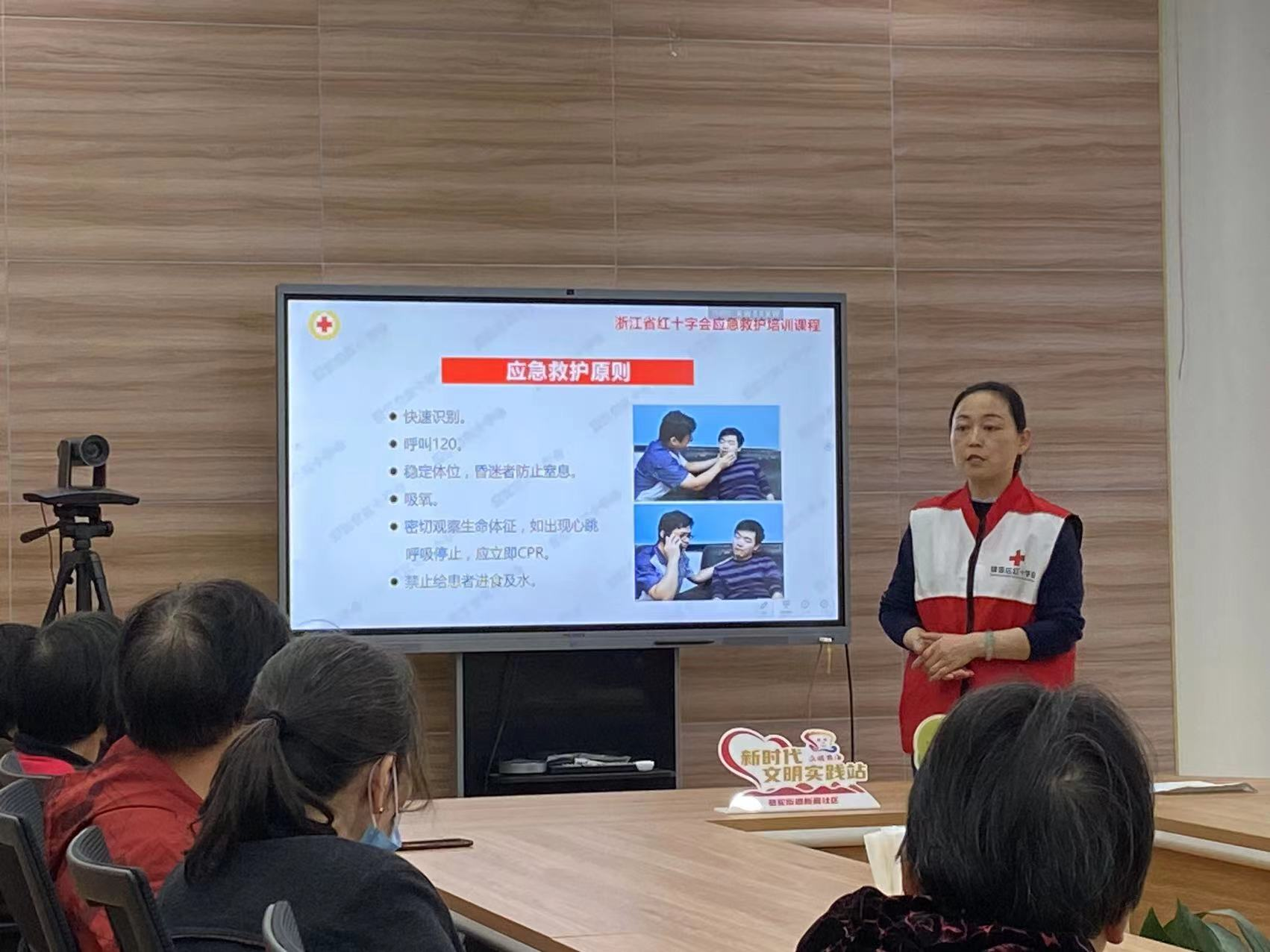 为弘扬“人道、博爱、奉献”的红十字会精神,广泛动员社会力量参与红十字会爱心行动,切实发挥红十字会在人道领域的桥梁和纽带作用。5.8日上午,新晨社区举办了“关爱生命 红十字‘救’在身边”公益讲座。现场,镇海区红十字会的老师为居民们讲述了针对脑卒中该疾病发作时如何应对并演示了心肺复苏术和应急救护、应急救援等相关内容。为大家作了一次精彩的普及培训,得到了群众的一致好评。