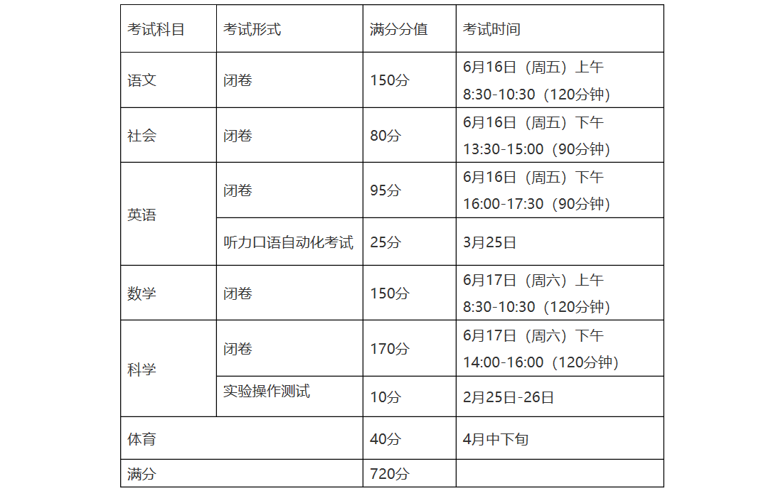 以上学科笔试均采用答题卷答题,考生在考试中不得使用计算器。各学科考试公布成绩保留整数位(其中英语学科为听力口语自动化考试总分与笔试总分求和后取整数位)。音乐、美术和综合实践活动三门科目作为考核科目,由学校根据考试标准实施考核,成绩计入学生综合素质评价。