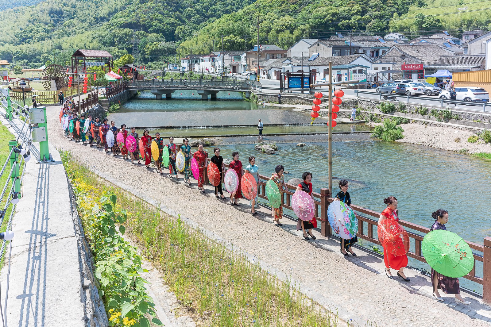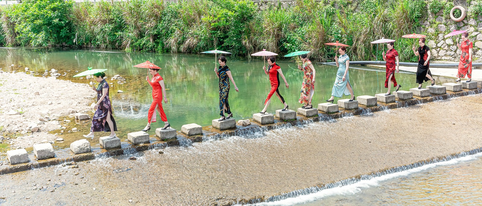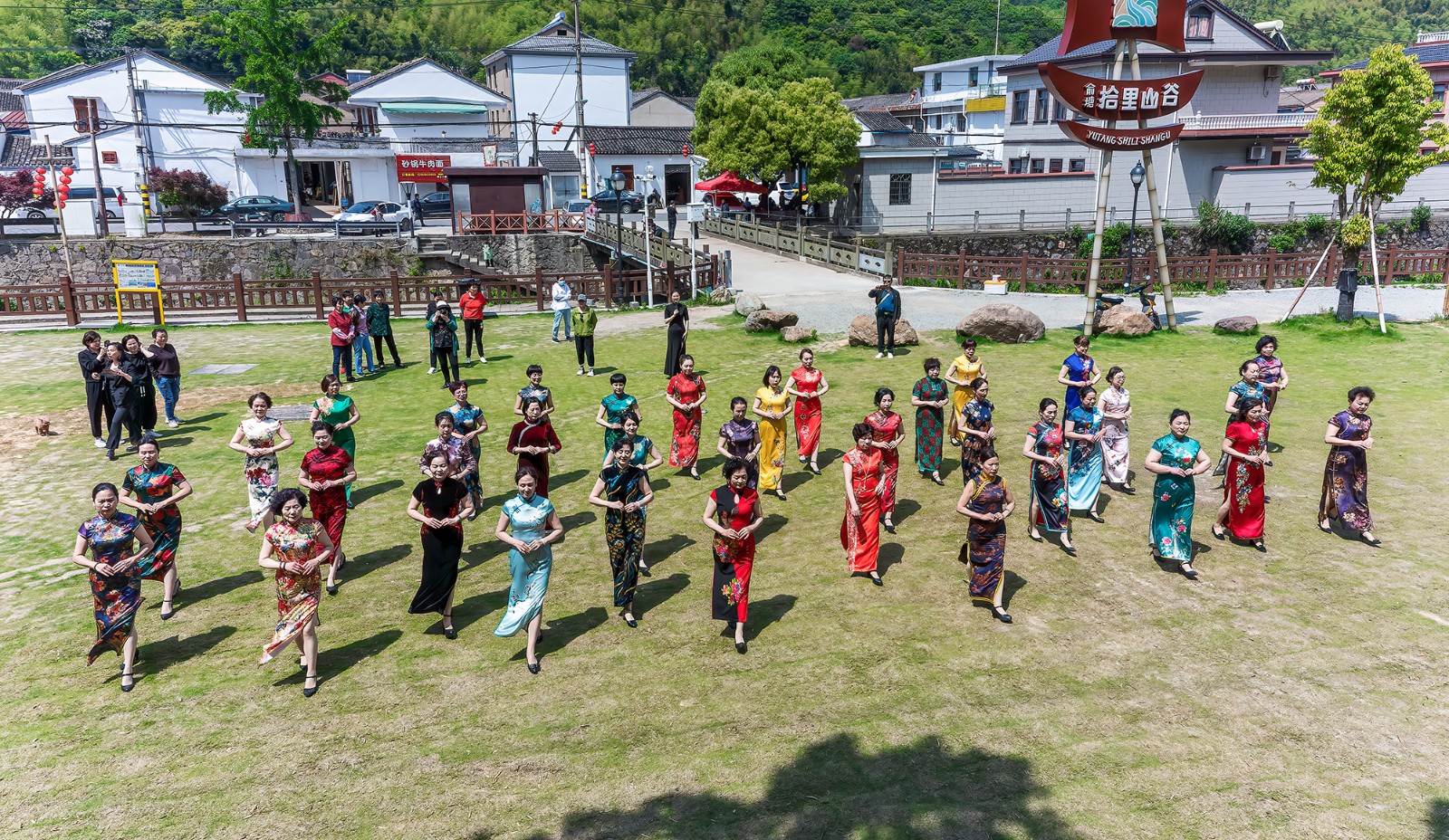 5月10日下午,钱湖旗袍队三十余名学员赴东钱湖俞塘村拾里山谷开展旗袍行走艺术课堂户外公开课活动。