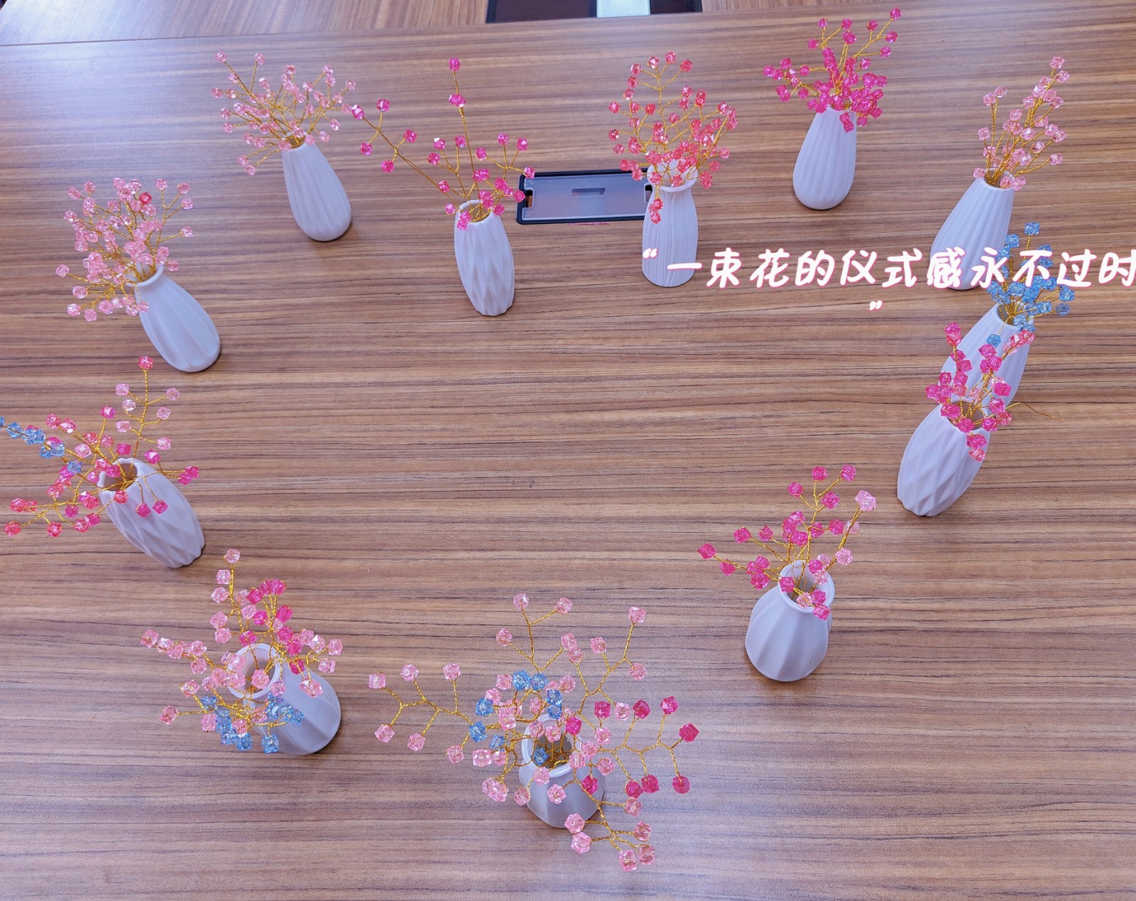 活动中,网格长为大家发放制作珠花的各种材料,让大家仔细检查手中的材料是否齐全。确认手中材料无误后,宁波银行汪老师拿着制作材料一步一步耐心教学,到了关键的步骤,还会放慢手中的动作,提示大家仔细观摩,并不时地进行一对一教学。大家通过剪裁、拧捏,将五颜六色的珠子穿进细细的铅丝里面,按自己的喜好组合搭配,形成了一枝枝形态各异,争相开放的花束。大家看着看着自己亲手制作的作品,大家的脸上都露出了开心的笑容,享受着成功的喜悦。