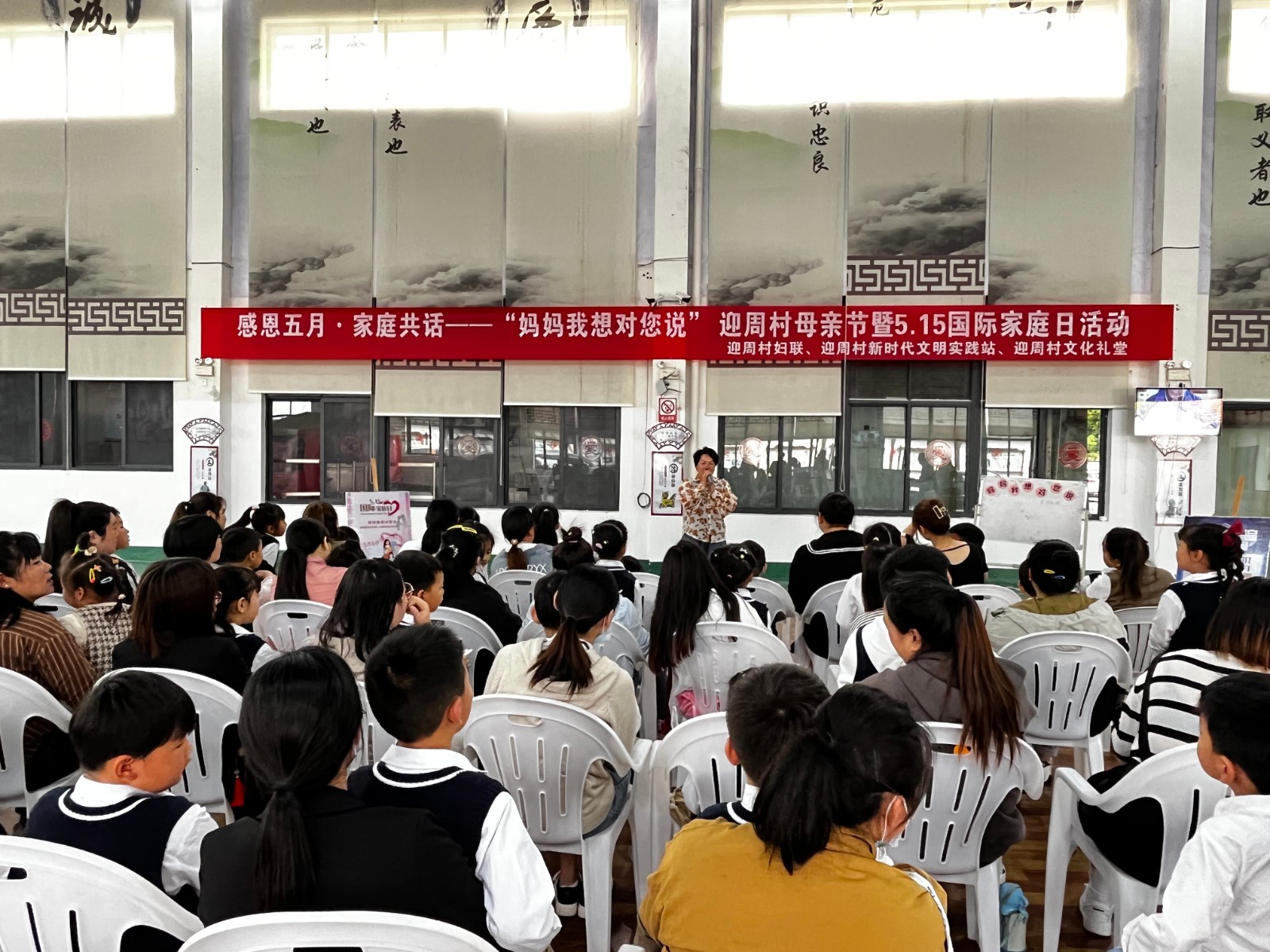 家是一个遮风挡雨的地方,是一个让人感到安心舒适的地方,恰逢繁花盛开的5月,我们迎来了国际家庭日和母亲节。为促进迎周村广大家庭和谐幸福,提升群众获得感、幸福感,营造感恩母亲的良好氛围,5月12日,迎周村妇联,迎周村新时代文明实践站联合镇海区迎周幼儿园在迎周村文化礼堂开展感恩五月·家庭共话—— “妈妈我想对您说” 迎周村母亲节暨5.15国际家庭日活动。