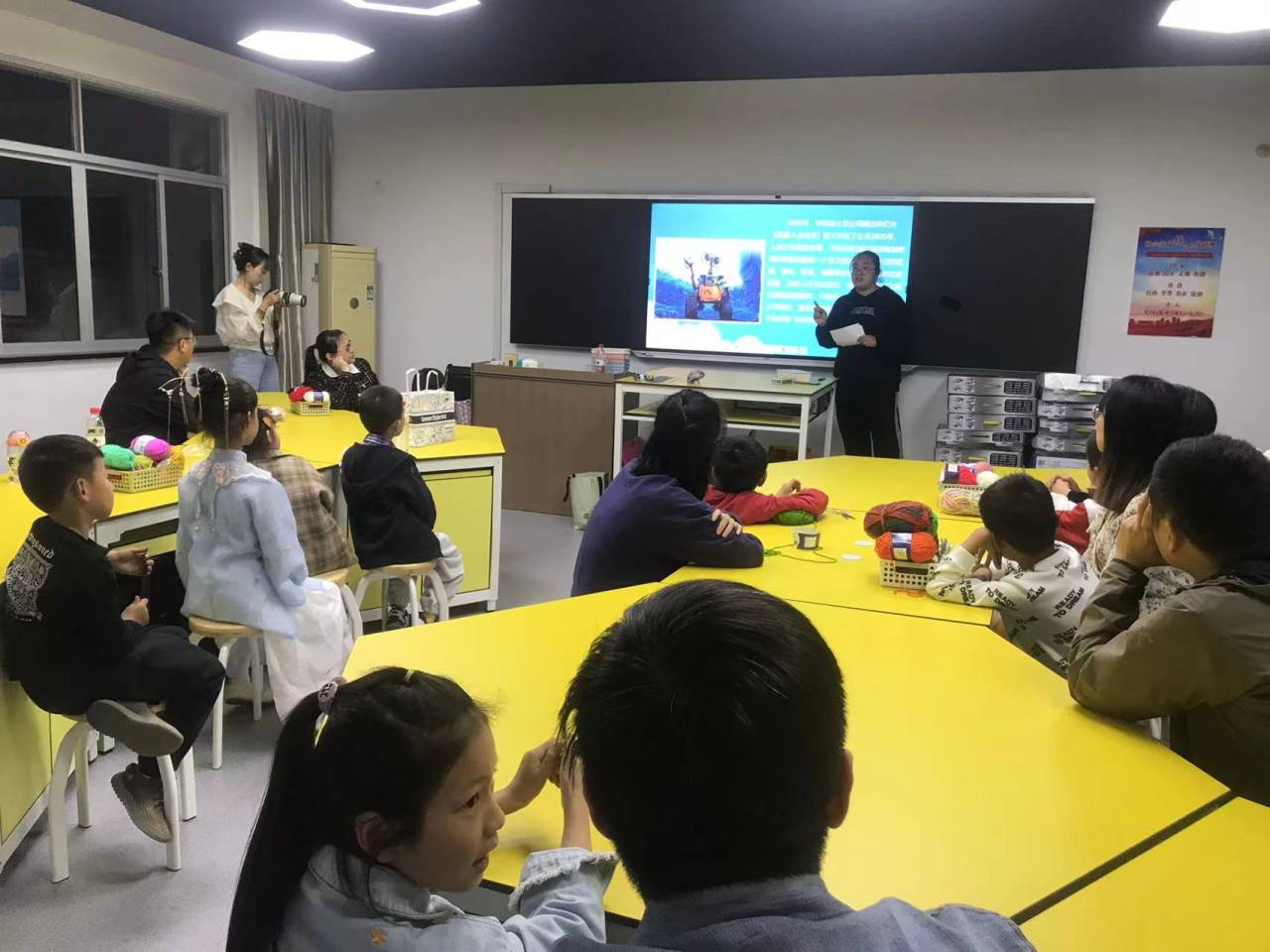 512日晚上,余姚开大(社区学院)姚创客公益课堂再次举行亲子活动,首先由本校的陈逸安老师为家长和孩子介绍垃圾分类知识,再由新建小学的汪冰老师,为大家带来一堂手工劳作课——玩转毛线。