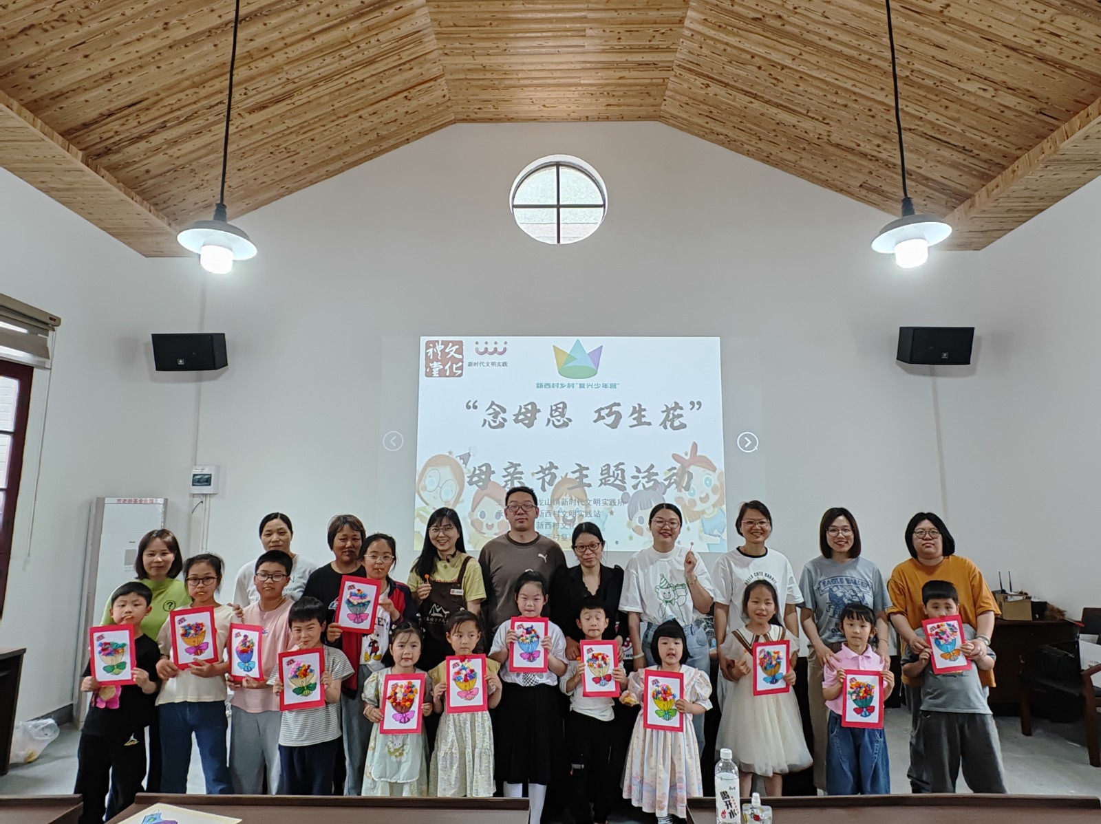 母亲节是一个表达爱的日子2023514日,新西村文化礼堂举行了“念母恩 巧生花”母亲节主题活动。上午8点半,13位小朋友牵着家长的手来到现场。志愿者范琼老师为大家讲述母亲节的由来及习俗,请小朋友了解妈妈,说说妈妈的喜好、特长,把对妈妈的爱大声地说出来,然后在范老师的带领下一起合唱《世上只有妈妈好》。活动最后一个环节是亲子DIY,为妈妈制作一份礼物,表达对妈妈的祝福与热爱。范老师示范制作过程,孩子们用灵巧的双手,和家长一道,通过绘画、折纸、手工、粘贴,制作了一朵朵独一无二的花送给妈妈,妈妈的一张张笑脸笑成了一朵朵花。