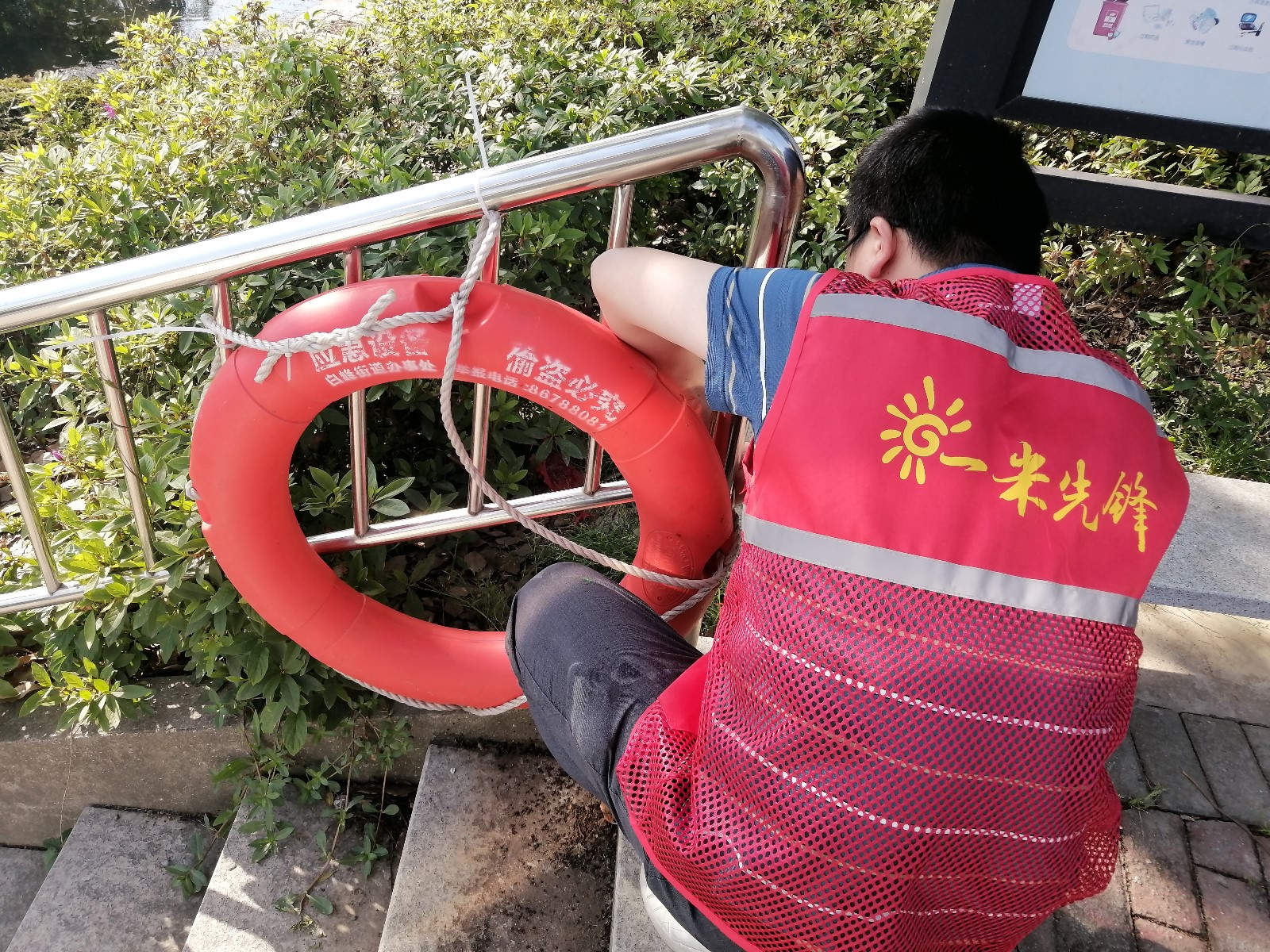 “老朱,这个救生圈可能半夜就掉在地上了,赶紧想办法固定一下啊!”5月15日早上,微网格员朱忠君刚走到牛头山路,远远就听到乐阿姨在招呼他,赶紧跑过去保护好救生圈,同时拍照上传到网格寻求帮助,中午就有志愿者带着工具重新固定好救生圈。作为社区的第一个埠长,热心的他隔三差五都会到埠头转一转,特别会留意一下救生圈、河道围栏等设施,发现问题及时提交到网格工作群,及时跟进维修进度,全力消除安全隐患。