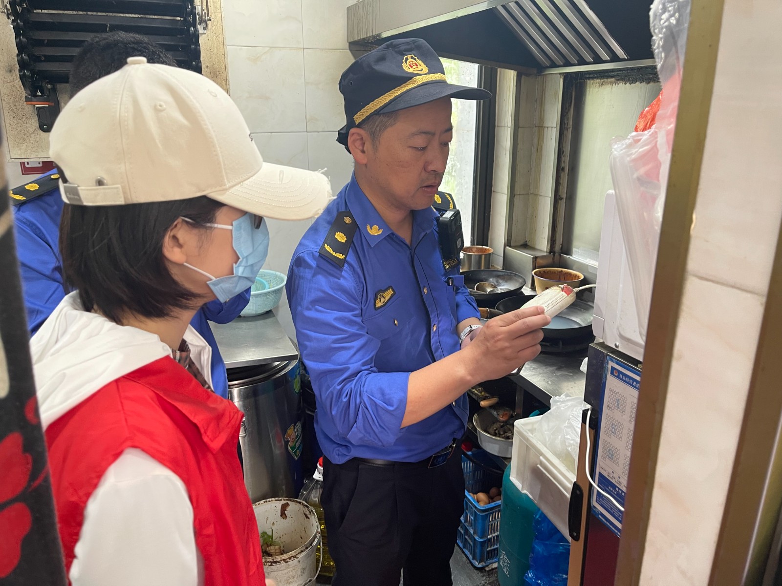 街道综合行政执法队联合社区网格员共同开展餐饮店铺“综合查一次”