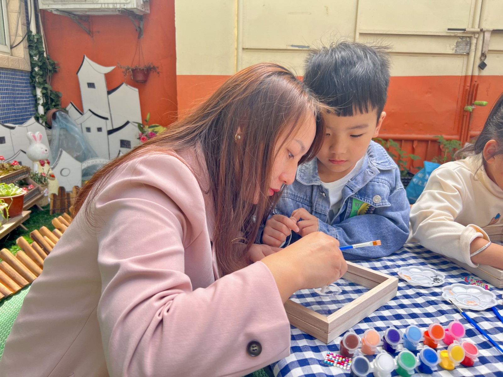 社工给孩子们讲解了母亲节的由来,通过与妈妈一起亲手画一张自己眼中的妈妈表达对妈妈的感恩,妈妈在伴随孩子成长的过程中不仅付出了辛苦,更给予孩子们爱的呵护。“你看这是我画的妈妈”“我给妈妈戴上了耳环”一幅幅绘画将小朋友们眼中的妈妈样子描绘了出来,有抽象派的,有写实派的,一幅幅“大师”作品新鲜出炉后,看着作品中的自己,妈妈们也是哭笑不得,“虽然有点滑稽,但是小家伙也懂得感恩了”现场的妈妈高兴的说着。孩子们尽情地享受着自己动手制作的快乐,享受和妈妈在一起的温馨时刻,为这个节日留住更多美好的时光。