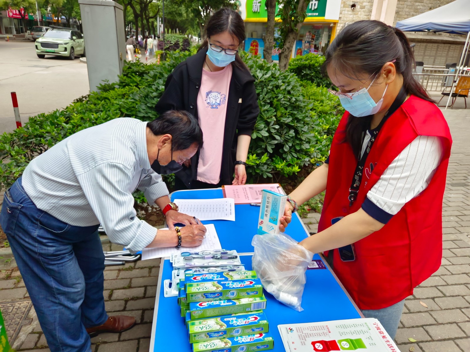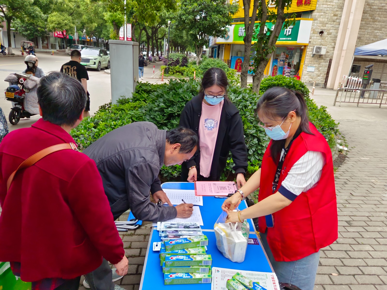 江南人家正门口早早就有居民排队,活动现场,青墩社区垃圾分类宣传员讲解了有害垃圾的危害、分类技巧、投放注意事项,还解答了居民朋友日常生活中存在的垃圾分类小困惑。居民也纷纷把日常暂存的有害垃圾拿到活动现场兑换牙膏、抽纸等日常用品。“每次都这个时间,碰到周末下午社区会发公众号的,我都已经很熟悉了,每个月都会特意收集有害垃圾,就等这天来换点日用品,真的很不错。”王阿姨一边说一边竖起了大拇指。