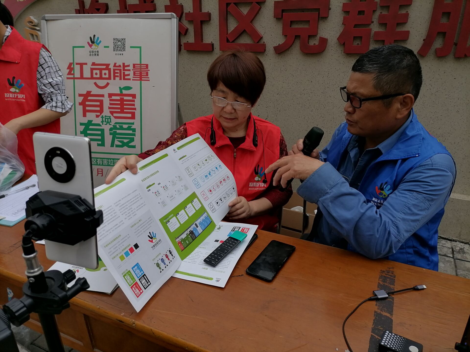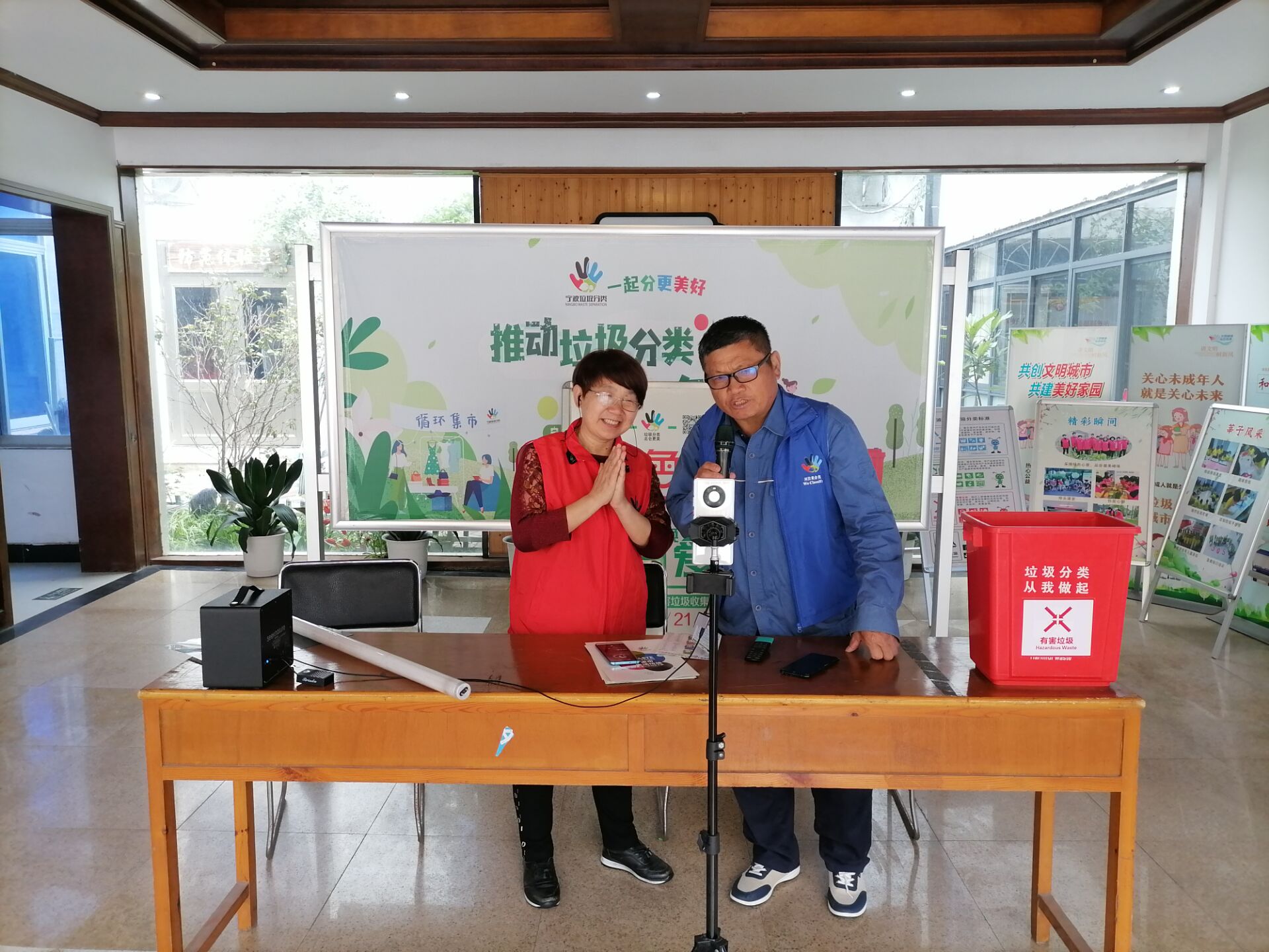 “目前宁波市生活垃圾共分为4类,包括厨余垃圾、有害垃圾、可回收物和其他垃圾,垃圾投放桶的颜色分别为绿红蓝黑……”整理完直播需要的设备,韩免贞便和妻子杜秋花立刻一起现身直播,和社区工作人员线上号召,线下兑换双向发力。据了解,居住在峰城社区微网格3的韩免贞来自党员世家,一门四个党员的他流动到哪里便服务到那里,妻子杜秋花网络号目前拥有80万粉丝,夫妻两人经常利用自己的网络“号召力”,做好正能量宣传。