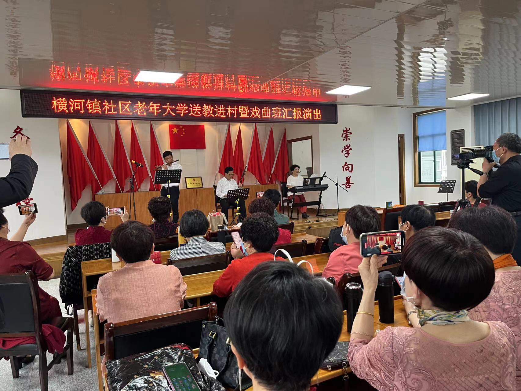 上午,横河成校老年大学的课堂搬到龙泉村文化礼堂,进行戏曲班教学成果展演,同时也作为我们学校送教进村的一次活动,相当有意义,不仅展现了我们老年学员的学习成果,更是向社会展示了我们老有所学、老有所乐的精神风貌,这也是我们助力乡村文化振兴的一方面。