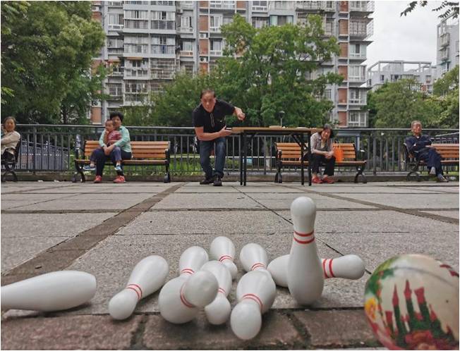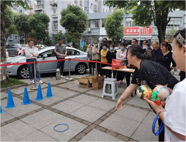 活动现场热闹非凡,参与者们在风趣幽默的主持人引导下,充分发挥自己的激情和竞技能力,积极参与各项富有趣味的运动项目,包括圈圈在飞、百发百中、打保龄球、夹乒乓球、原地踏步等。居民们在活动中努力找寻着成功的技巧,切实感受到了运动的快乐。围观的居民不断地为选手们加油助威,加油声、欢笑声不绝于耳,场面十分精彩。