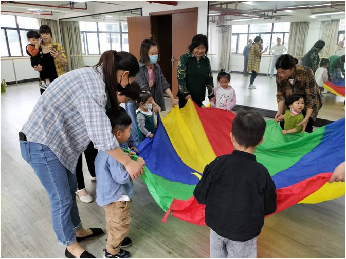 活动中,祥云幼儿园的老师们以音乐律动操暖场拉开整场活动的序幕,在欢快的歌声中,小朋友们蹦啊跳啊消弭了陌生感,打成了一片。之后,老师们又通过“快乐彩虹伞”、“手指童谣”、“小兔去郊游”等游戏在寓教于乐中让孩子们开发智慧、增长知识。