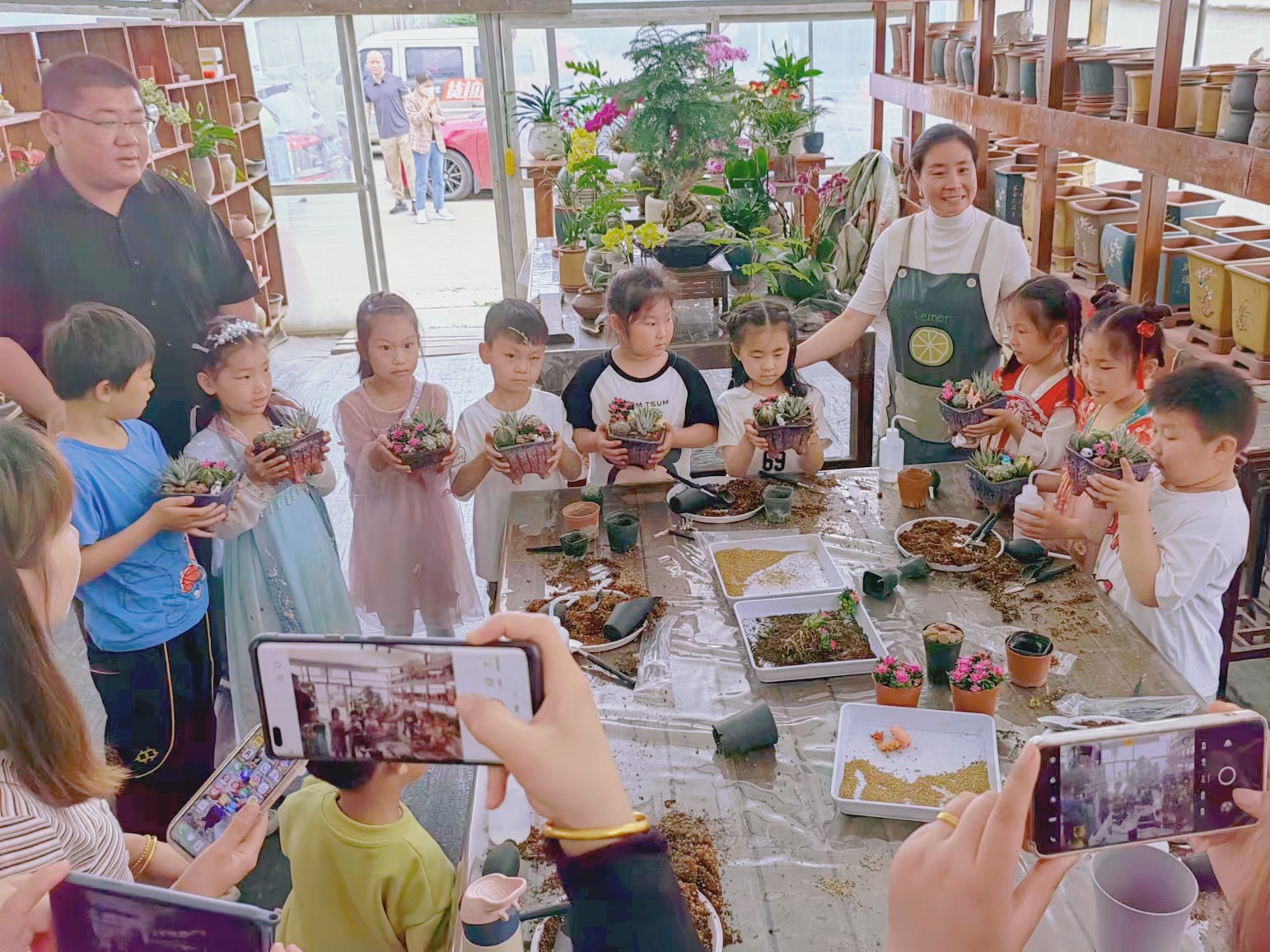 去观察绿植,去体验种植,去感受语文书里的“映日荷花别样红”、“霜叶红于二月花”、“万条垂下绿丝绦”……花木世界里各种各样的绿植,激起了小朋友们对大自然的热爱。置身花花世界,从书本到现实,近距离的感受让小朋友们惊喜不已。活动现场,小朋友们一边听着专业介绍,一边仔细观察,写作文时的“栩栩如生”、“风和日丽”、“千姿百态”……都在此时浮现了出来。