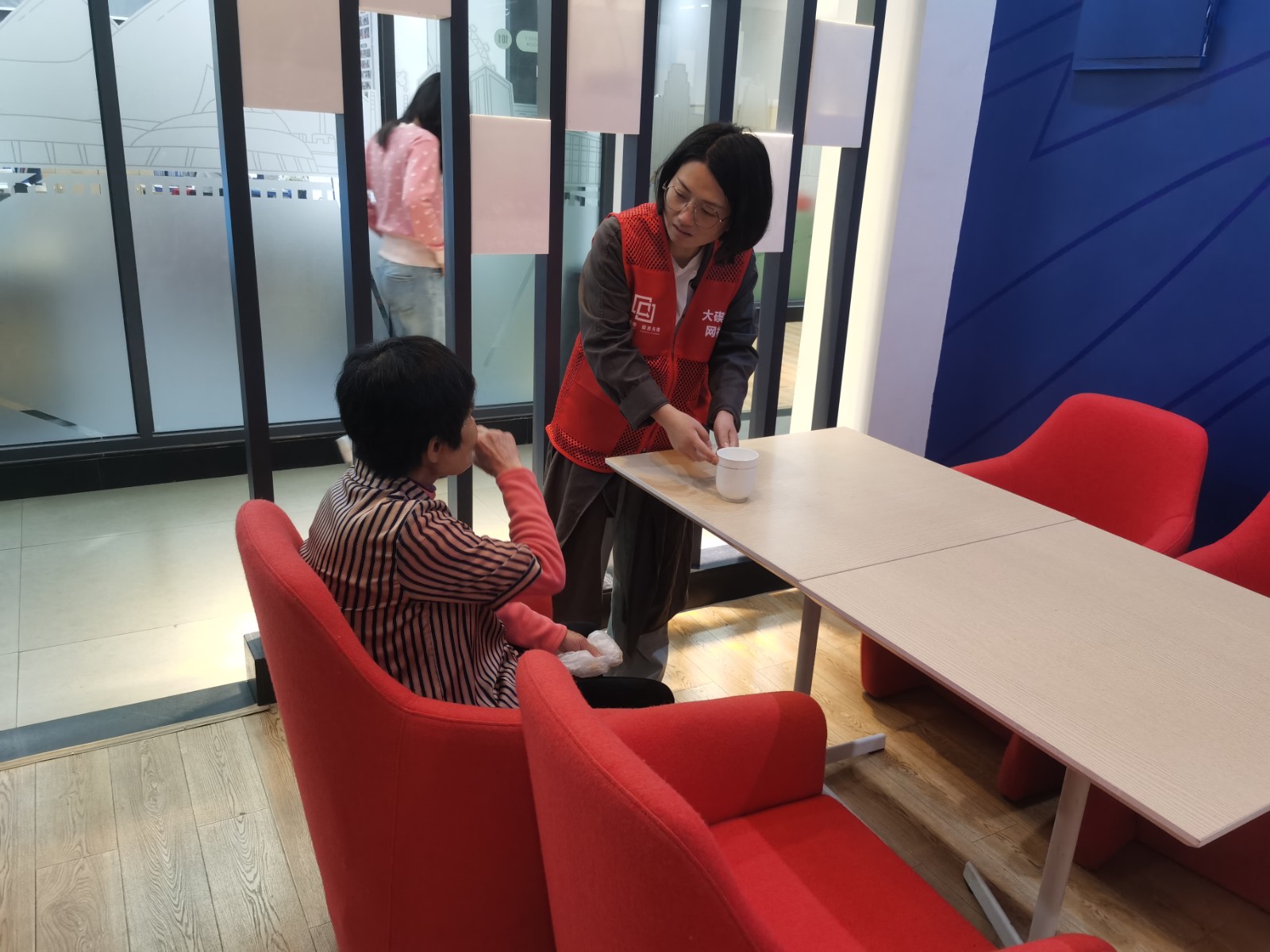 “阿姨,你先在这里坐一会休息一下,不要着急,我们联系上您的女儿了,她已经在过来的接您的路上了。”网格员说着为阿姨递上了一杯热水,“您先喝点水暖暖身子。”